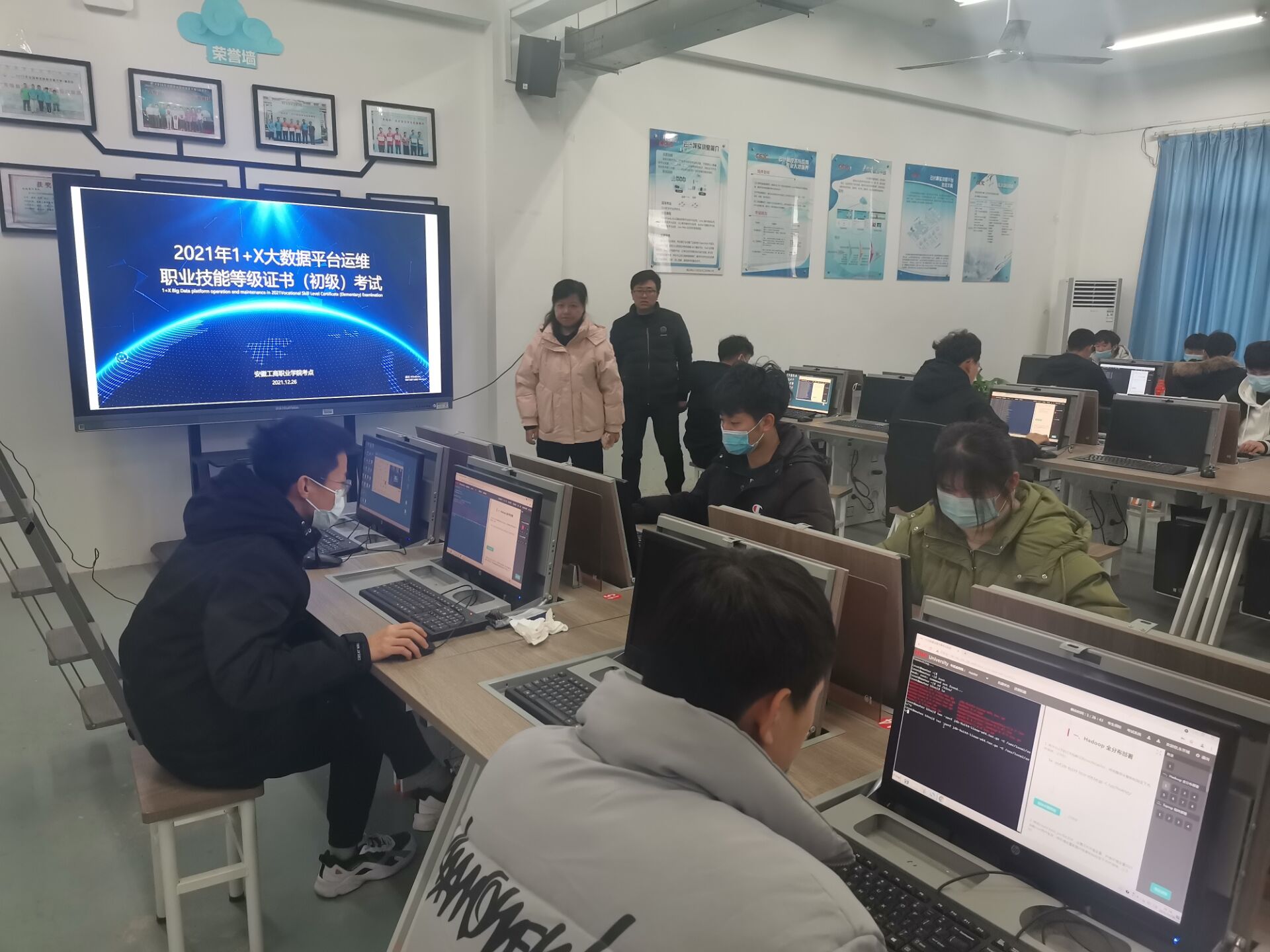 1226日,20211+X大数据平台运维职业技能等级证书(初级)认证考试在我校举行,信息工程学院共有30名学生参加了本次考试。本次等x级认证工作从筹备组织到培训考核得到校院领导及教务处的大力支持,考试由评价组织新华三技术有限公司组织实施,我校作为此次考试的考点之一,协同参与考务组织工作,考试当天,学院领导亲临考试现场巡视指导。