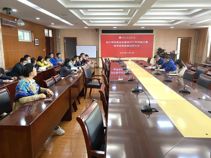 2021年11月1日,会计学院在明德楼二号会议室召开了2021年安徽省职业院校技能大赛指导老师动员。会议由会计学院院长高克智主持,会计学院副书记杨锐、教务科长费玄淑以及各参赛团队指导老师参加了此次会议。