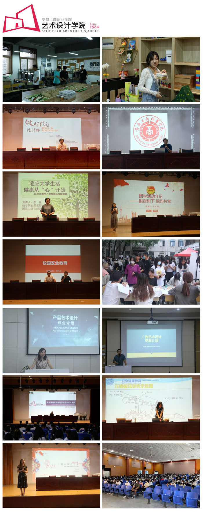 为了2021级新同学尽快适应大学生活,艺术设计学院提前谋划、细致安排,合力参与、多方联动,于9月22至24日围绕校史院情、安全常识、规章制度等内容,集中开展新生入学教育,先后组织新生参观了学院合瓦•VISION艺术馆、各专业工作室、实训室;通过大会宣讲、主题班会的方式,让同学们坚定理想信念,养成良好学风,勇于拼搏奋斗,走好成长成才的第一步。322名新生、14名教师参与本次入学教育活动。