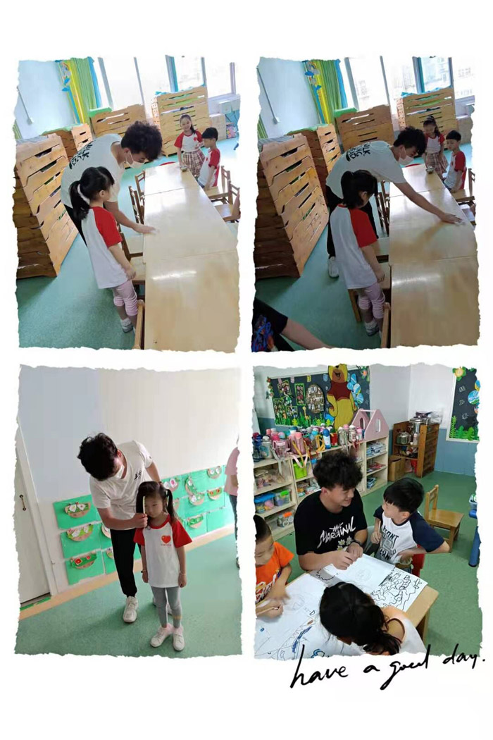实习中,一方面同学们带着学校课堂中的理论知识融入到实践教学中,实现从理论到实践的教育技能转化;另一方面,同学们则真正进入幼儿园教学环境,在实践教学中观察记录幼儿一日生活的基本环节,评析幼儿对性别、自我认识和语言发展方面发展情况等具体工作流程。
