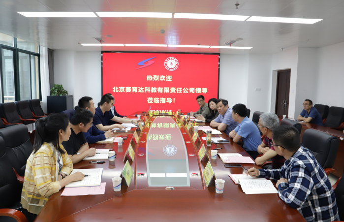 耿东川代表企业一行人对学校的热情招待表示了感谢,并围绕“赛育达公司简介、工业机器人X证书推进情况、增材制造及智能线系列X证书推进情况和下一步工作方向”四个方面,介绍了北京赛育达科教有限责任公司的发展历程、行业特色和远景规划等,重点介绍了工业机器人应用编程“1+X”职业技能等级证书试点工作的推进情况,希望能在校企合作、专业建设、教学资源开发、科研与社会服务等方面与学校开展进一步的合作交流。