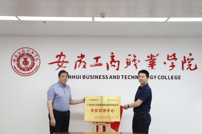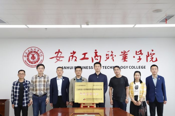 为贯彻落实《国家职业教育改革实施方案》和全国教育大会精神,加快提升职业教育质量。5月11日上午,“工业机器人应用编程职业技能等级证书考核管理中心”揭牌仪式在学校综合行政楼第六会议室成功举行。校长李雪,校教务处副处长姚庆锋,安徽省1+X证书制度试点工作协调推进办公室挂设办主任张娴、专职工作人员谢爱国,北京赛育达科教有限责任公司副总经理耿东川,江苏汇博机器人技术股份有限公司营销总监郭艳军和安徽区经理李庆,学院党政领导和教师代表参加此次揭牌仪式。仪式由应用工程学院院长张震主持。