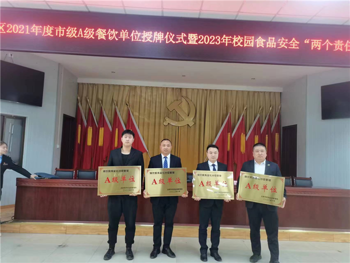 授牌仪式上,双凤市场监督管理所向我校四家食堂服务企业代表授予量化分级A级牌匾。