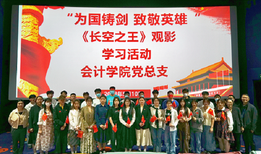 为深入学习贯彻习近平新时代中国特色社会主义思想和党的二十大精神,厚植爱国情怀。5月10日中午,会计学院党总支在万达影院组织开展“为国铸剑,致敬英雄”红色观影主题活动,会计学院50余名师生党员参加。