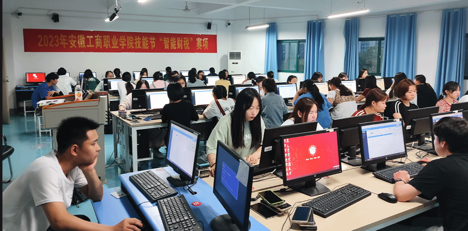 2023年5月24日,安徽工商职业学院技能节—会计学院“智能财税”赛项决赛在教学楼KJ301机房顺利举行,共有64名参赛选手同台竞技,展示技能,会计学院党总支书记赵艳和院长高克智莅临现场进行指导。初赛已于5月17日举行,共122人参与角逐,竞争十分激烈。专业教师黄国瑞和吴志明担任“智能财税”赛项的指导教师。