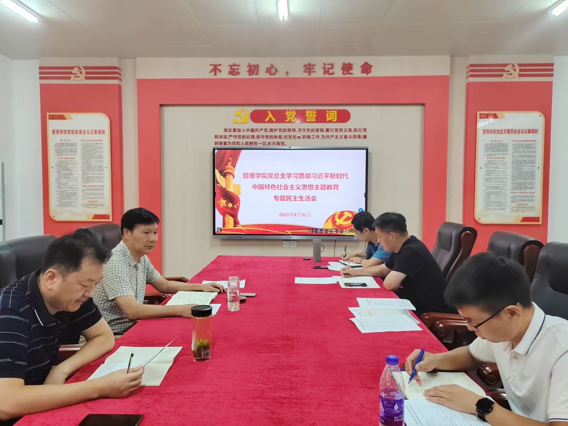 按照学校党委部署要求,8月31日,管理学院党总支召开学习贯彻习近平新时代中国特色社会主义思想主题教育专题民主生活会。本次民主生活会严格落实上级党委要求,聚焦主题教育总要求,联系工作实际,查摆突出问题,开展党性分析,进行批评和自我批评,明确改进措施和努力方向。管理学院党总支书记曹大友主持会议,校党委委员、发展规划与质量管理处处长朱小龙到会指导工作,管理学院党总支全体委员参加会议。