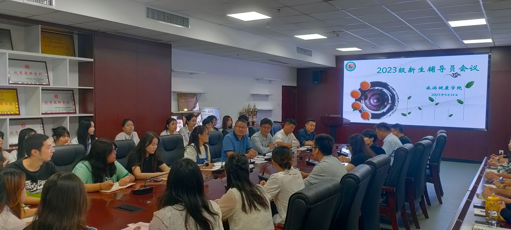 9月14日中午,旅游健康学院在学院会议室召开2023级全体新生辅导员会议,会议由党总支书记杨锐主持,副书记刘燕、全体2023级专兼职辅导员、学生助理辅导员出席了本次会议。