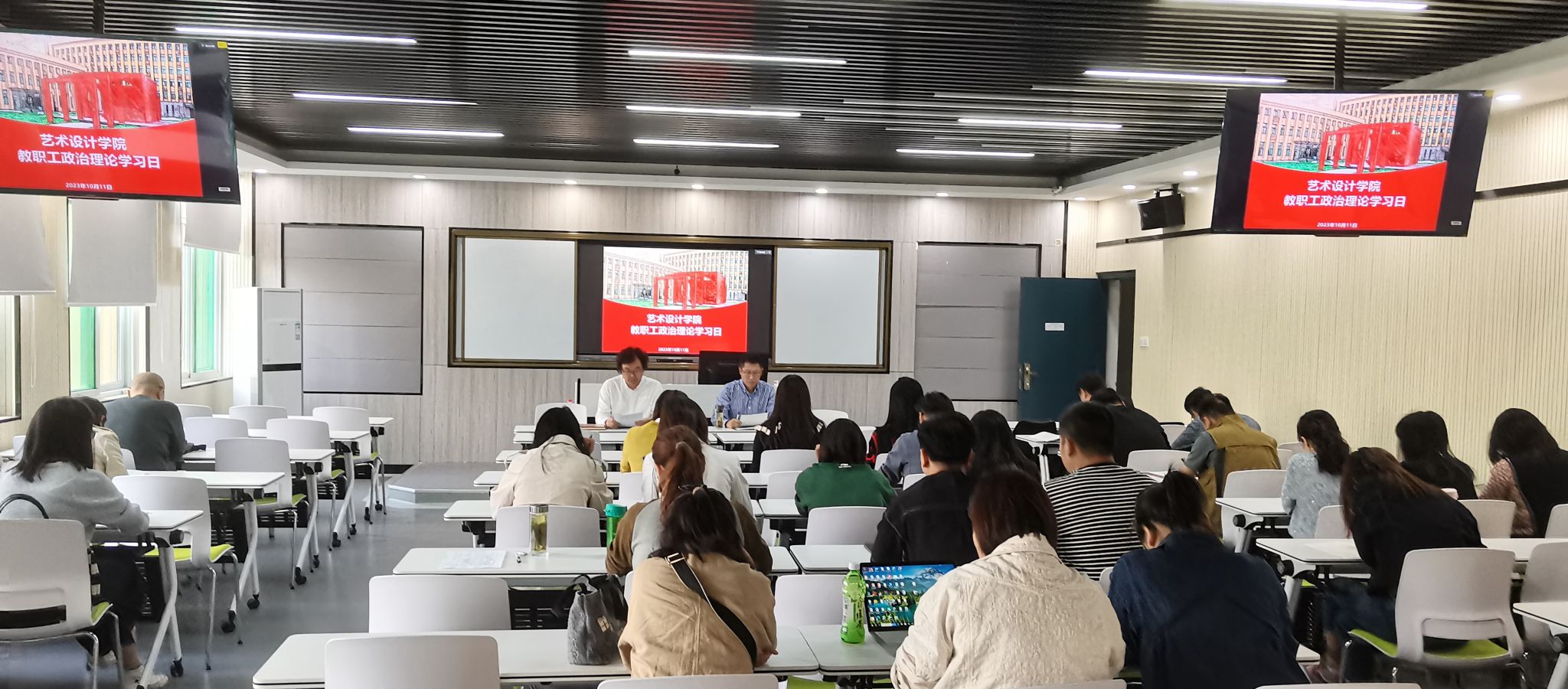 10月11日下午,艺术设计学院党总支在致知楼Z204智慧教室组织召开教职工政治理论学习会议。校党委委员、党委宣传统战部部长、艺术设计学院党总支书记孔成,艺术设计学院党总支副书记张乐等教职工参加学习。