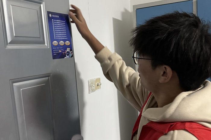 法治宣传深入学生社区。11月29日,协会会员与峰宁社区工作人员深入学生社区,开展“反诈·防诈宣传”,他们发放法治宣传资料、粘贴防骗标签,用行走的力量践行“法协”责任。