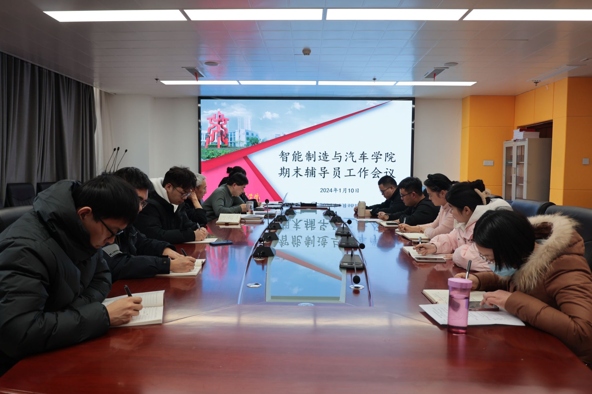 1月10日中午,智能制造与汽车学院在第六会议室召开学期期末辅导员工作会议。会议由学院党总支书记丁浩主持,学院党总支副书记盖昊宇和学院全体专兼职辅导员参加会议。