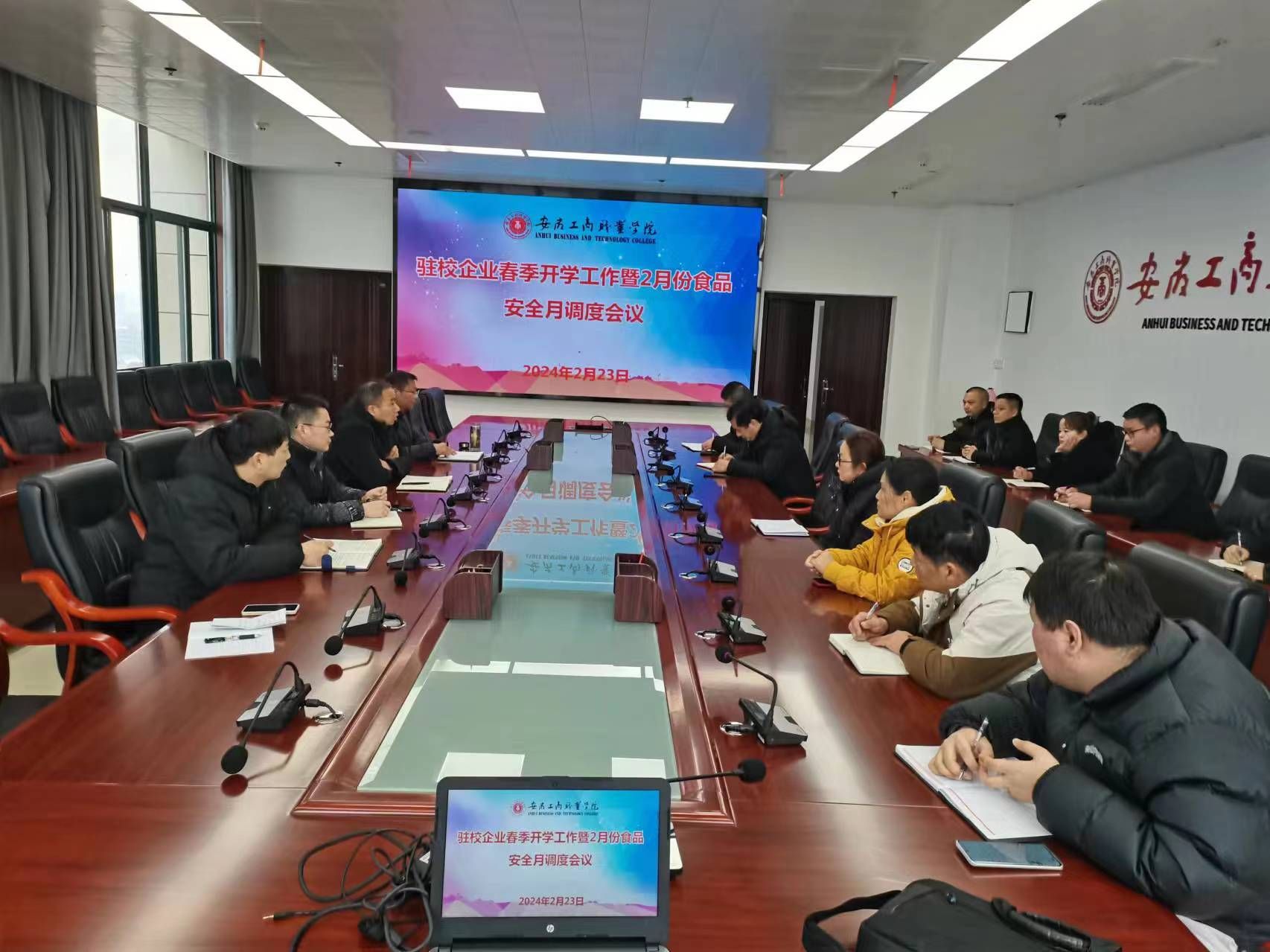 2月23日上午,后勤管理处召开驻校服务企业2024年春季开学工作暨2月份食品安全月调度会议,后勤管理处处长陈松、后勤管理处副处长余林海、后勤管理处副处长李德杰、相关人员和各校园服务企业有关同志参加会议,会议由陈松主持。