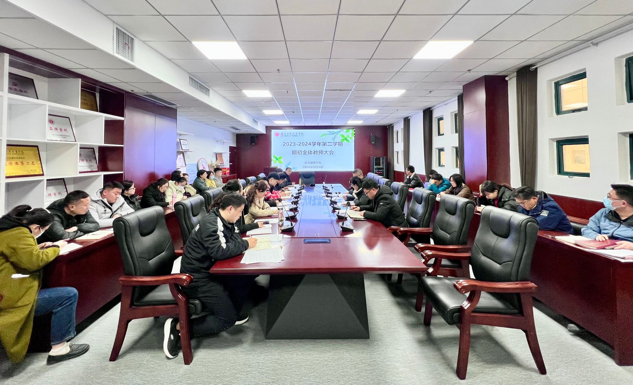 2024年2月28日下午,旅游健康学院期初全体教师大会在学院会议室召开,学院全体教师参加了会议,会议由旅游健康学院党总支书记杨锐主持。