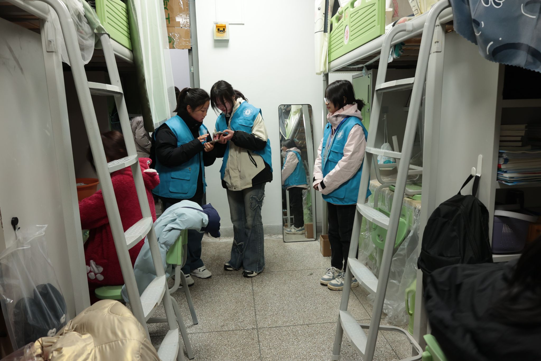 2月27日下午,学院党总支书记丁浩带领辅导员一行走访学生宿舍,开展安全隐患排查。走访过程中,丁浩与学生亲切交流,了解同学们的学习、生活情况和思想动态,并对同学们进行了安全知识的教育和宣传,叮嘱大家要加强安全防范,妥善保管好贵重物品,要严守“四项禁令”,涵养文明习惯,做文明的工商人。