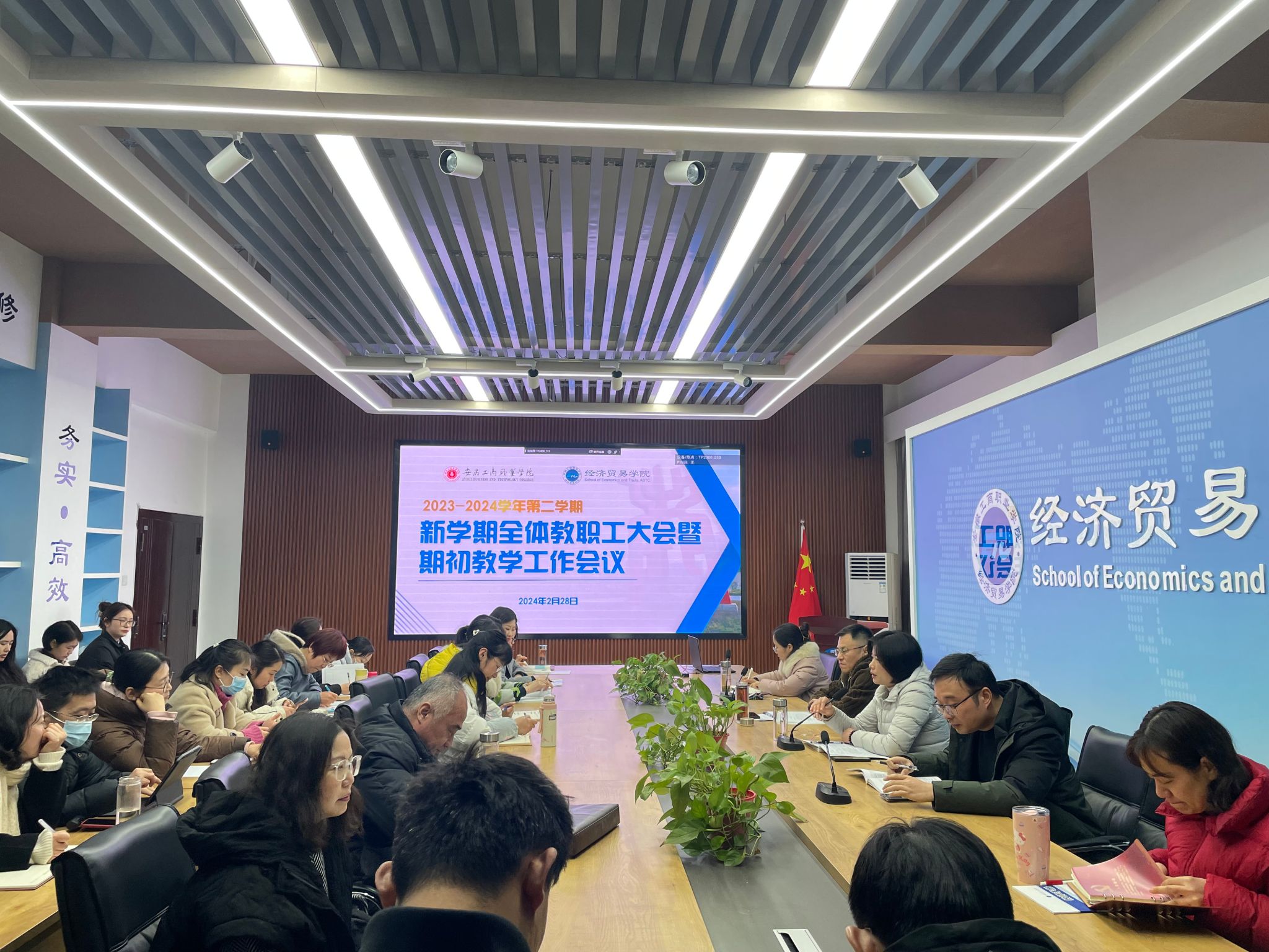 2月28日下午,经济贸易学院在学院教师教学能力提升中心召开新学期全体教职工大会暨期初教学工作会议,会议由院长张颖主持。