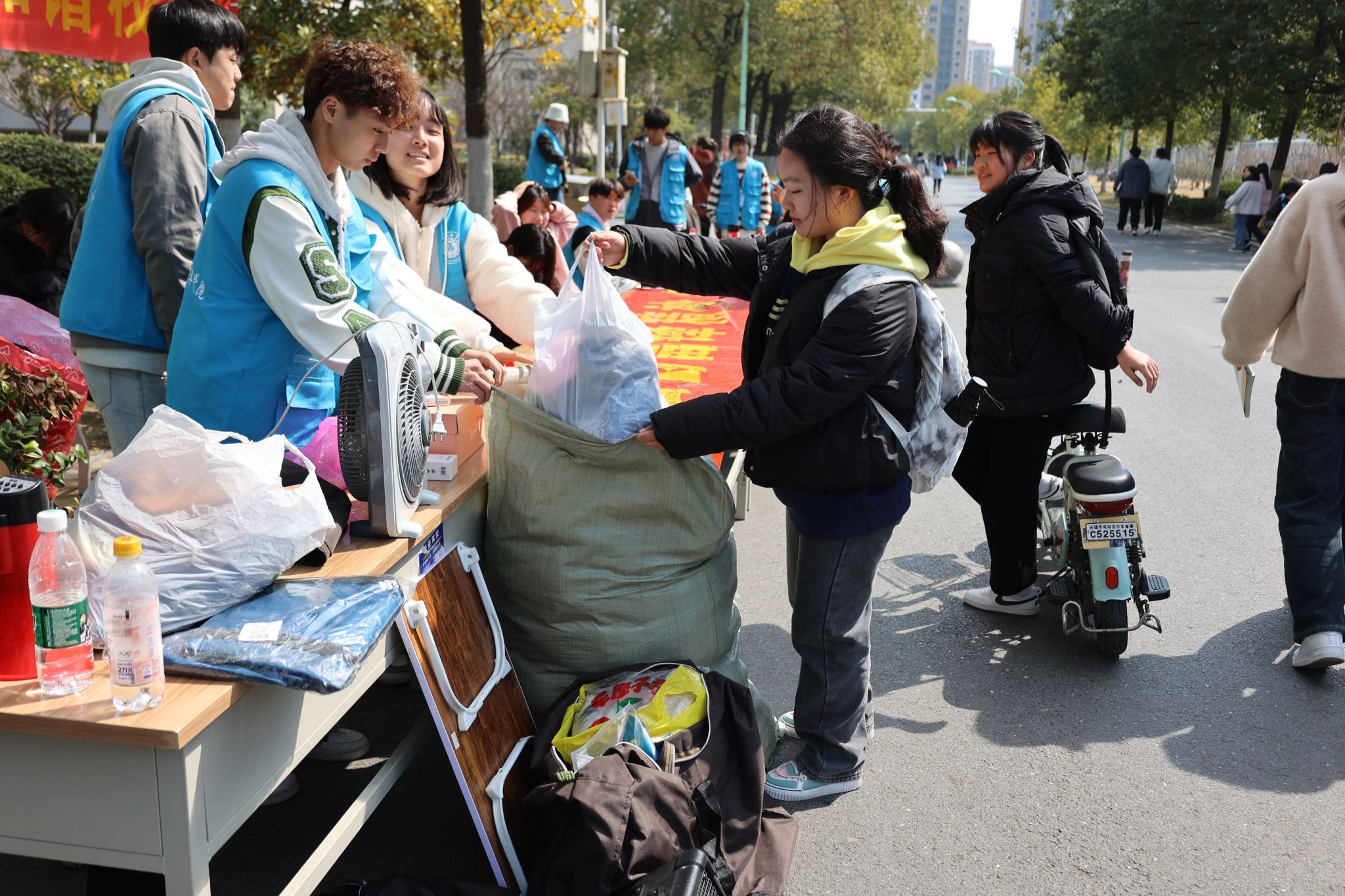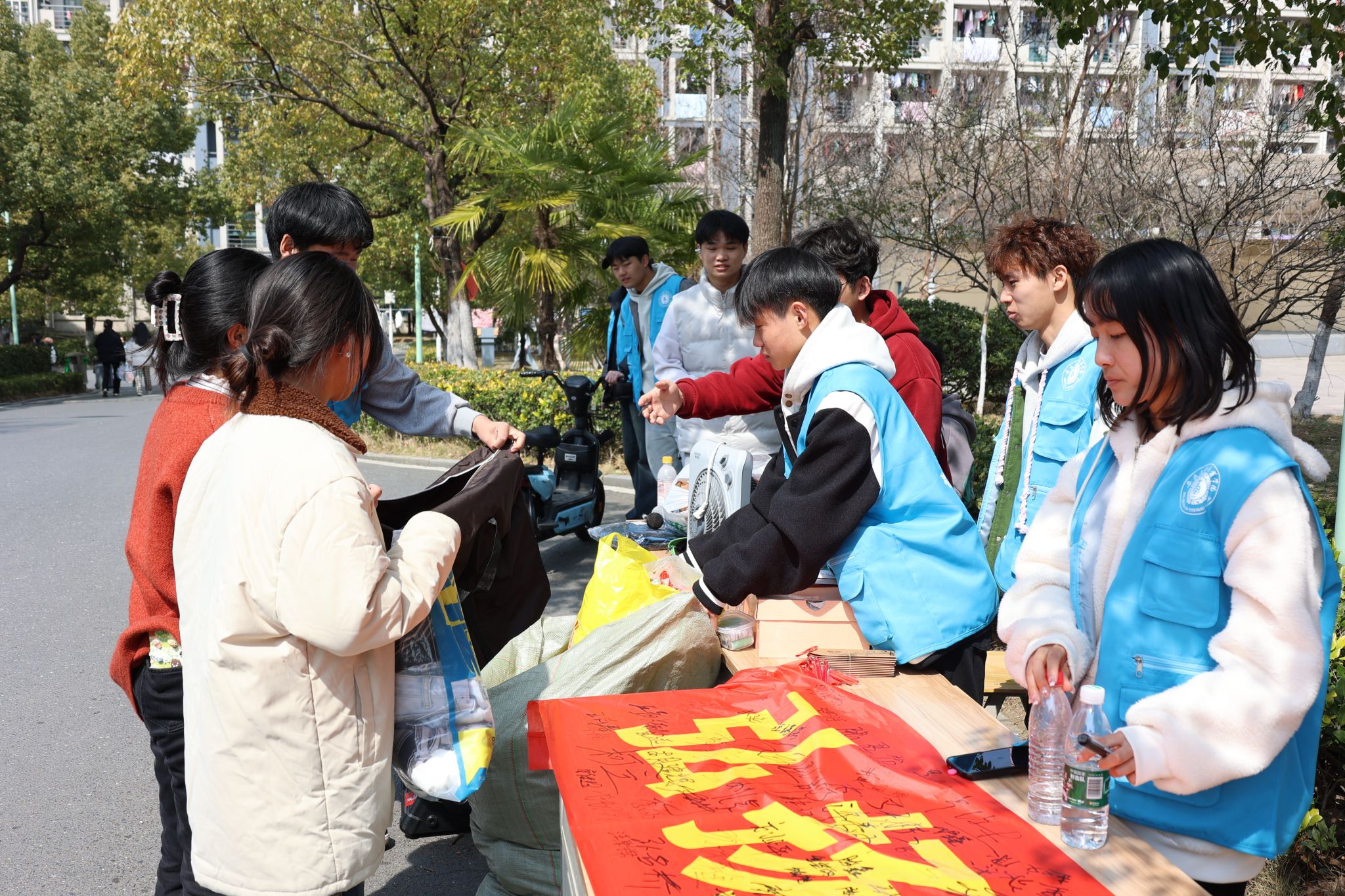 活动开始前,团总支学生会同学们分工明确,积极协调,互相配合,线上线下相结合积极宣传捐赠活动,为本次爱心捐衣活动的顺利进行做好了各项准备。随着活动的进行,前来捐赠物品的同学们越来越多,志愿者们积极热情地引导着捐赠的同学进行信息登记并回赠纪念品。活动结束后,志愿者们将物品清理、分类、打包,共计捐赠百余件各类物品。