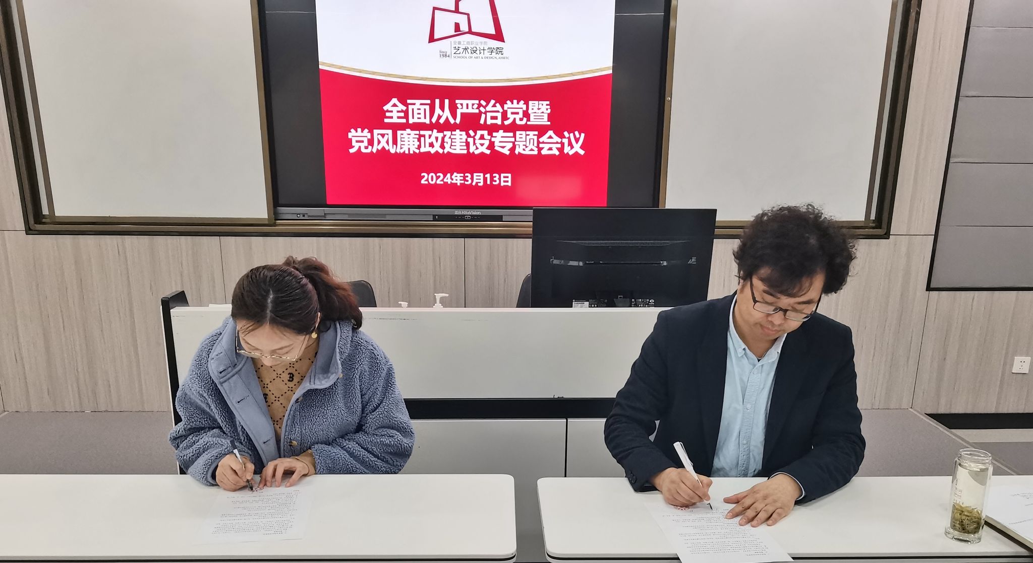 会上,孔成总结了艺术设计学院2023年全面从严治党暨党风廉政建设工作情况,他指出:2023年,学院严格按照学校党委、纪委要求,贯彻落实全面从严治党,认真落实中央八项规定,反对四风,认真执行党的政治纪律、组织纪律、工作纪律、财经纪律、群众纪律和生活纪律,在教师引进、项目建设、外出写生、学术活动等重大问题上把好了政治关。认真落实党风廉政建设责任制,发挥专业特长,不断增强廉政教育的有效性和多样性。
