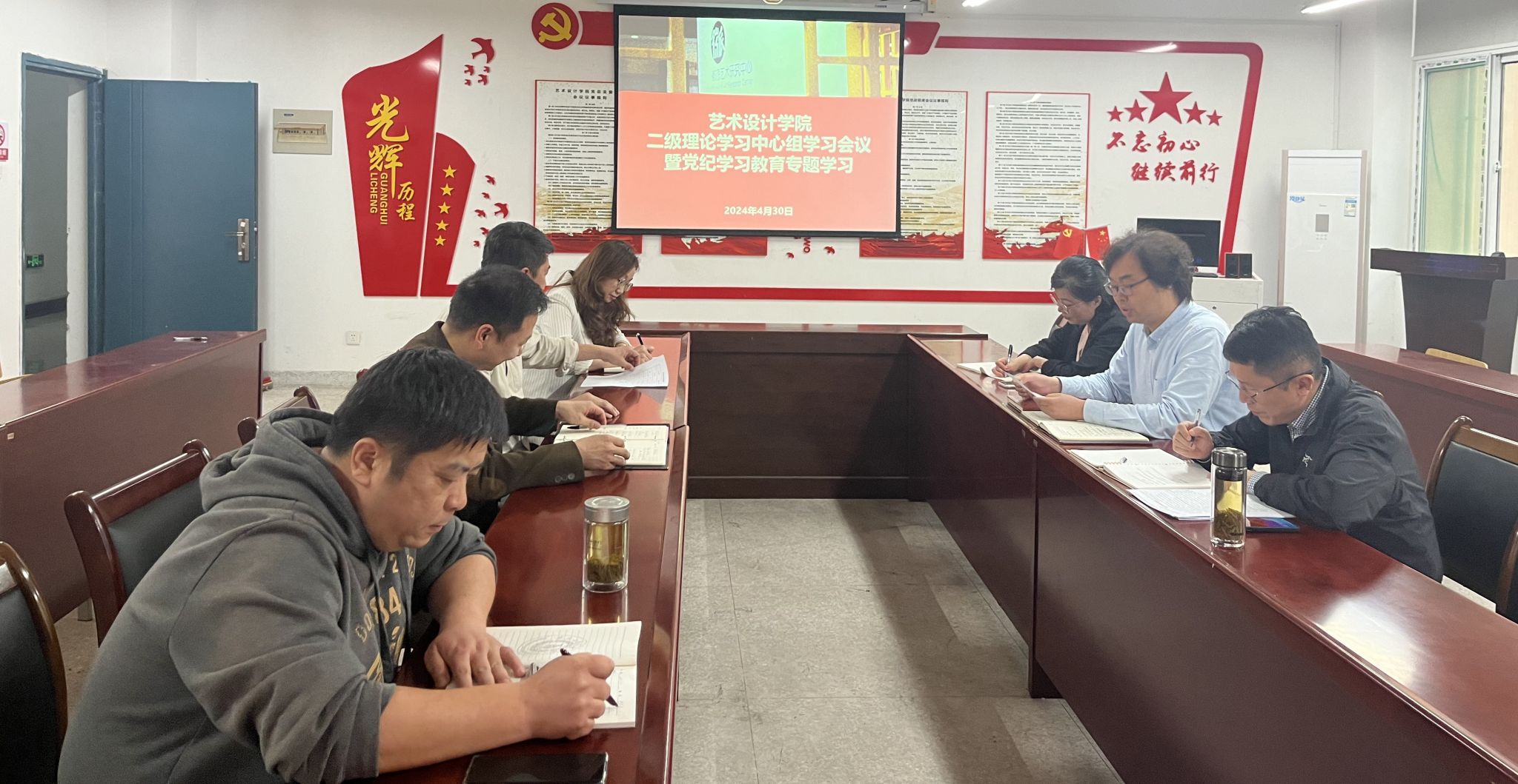 4月30日上午,艺术设计学院党总支在致知楼党员活动室组织二级理论学习中心组学习暨党纪学习教育专题学习,校党委委员、党委宣传统战部部长、艺术设计学院党总支书记孔成,艺术设计学院党总支副书记、院长魏芬,艺术设计学院党总支副书记张乐及全体总支委员参加学习。