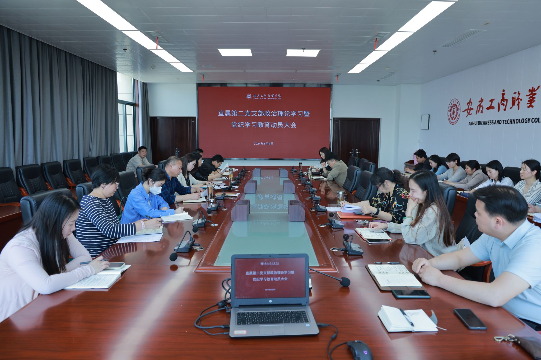 5月8日,直属第二党支部召开教职工政治理论学习暨党纪学习教育动员大会。支部全体教职工参加会议,支部书记张娴主持会议。