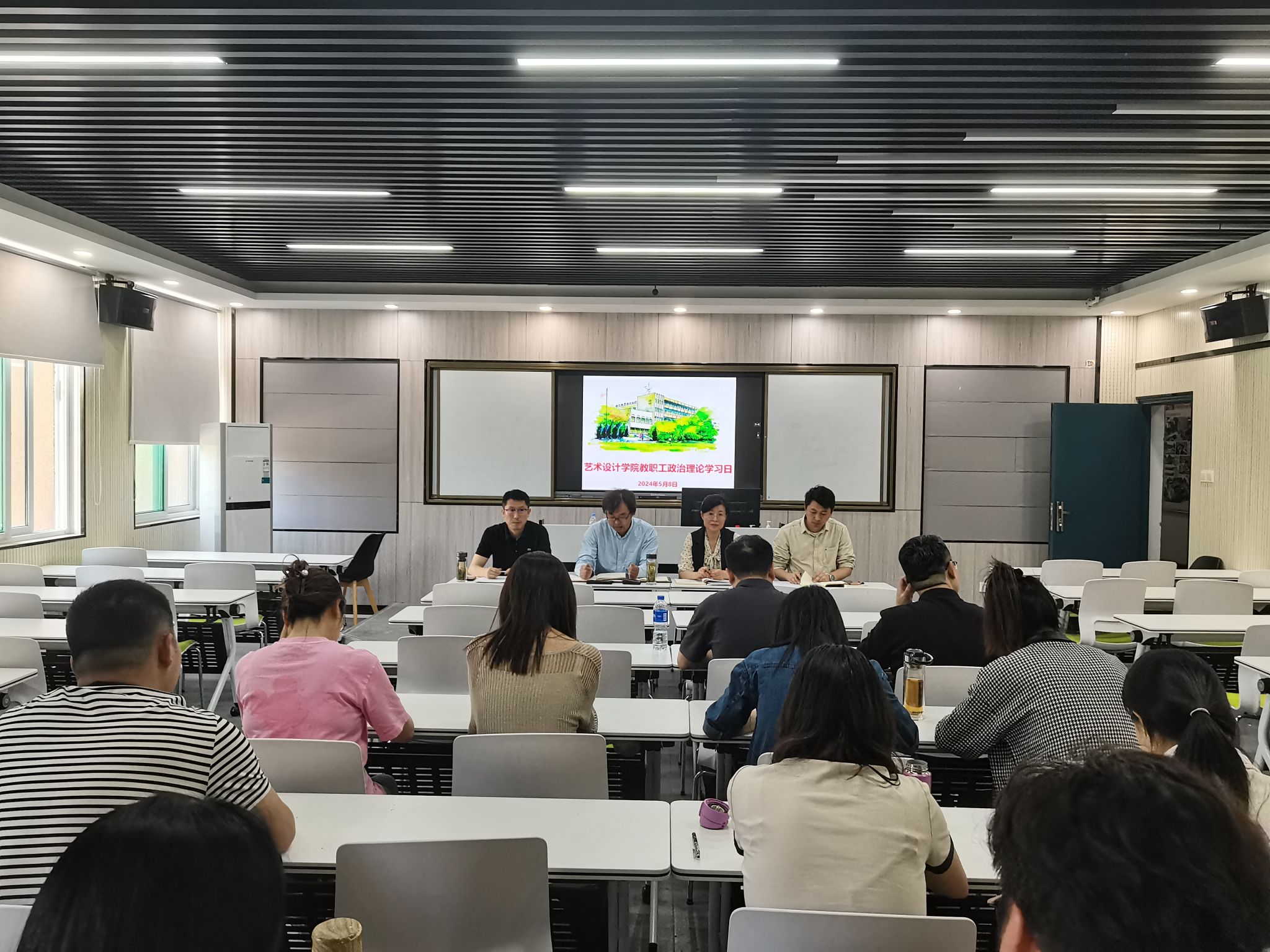5月8日中午,艺术设计学院党总支在致知楼204智慧教室组织召开五月份教职工政治理论学习会议。校党委委员、党委宣传统战部部长、艺术设计学院党总支书记孔成,艺术设计学院党总支副书记、院长魏芬,艺术设计学院党总支副书记张乐等全体教职工参加会议。会议由孔成主持。