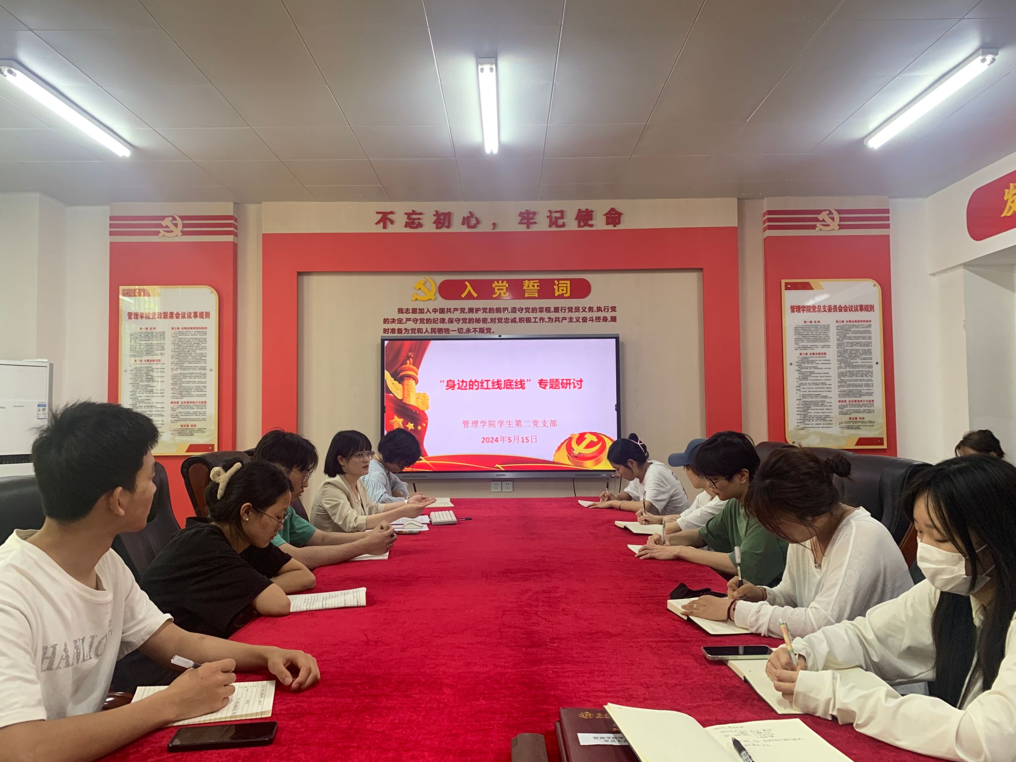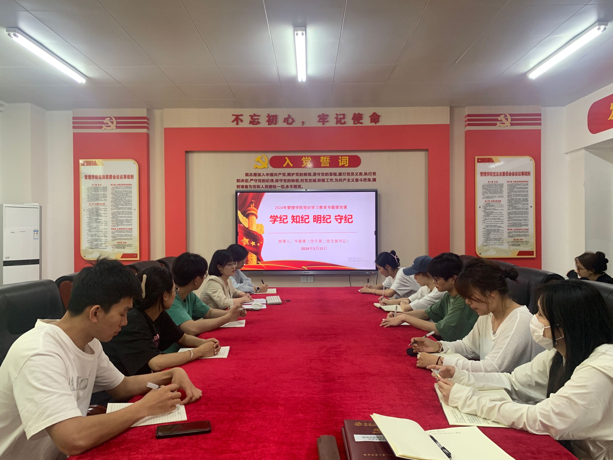 自党纪学习教育开展以来,管理学院学生第二党支部始终将学习贯彻落实习近平总书记关于党的纪律建设的重要论述、关于党纪学习教育的重要讲话和重要指示精神作为支部当前中心工作,细化学习任务、时间节点及责任分工,结合主题党日、“三会一课”活动,运用“学习强国”等主流学习平台,奏响党纪学习教育主旋律。接下来,支部将结合重点工作,做好紧密联系实际学,突出抓好以训助学,聚焦“六项纪律”做好督察整改整治,确保党纪学习教育走深走实。(编辑:毕筱菁 审核:曹大友)