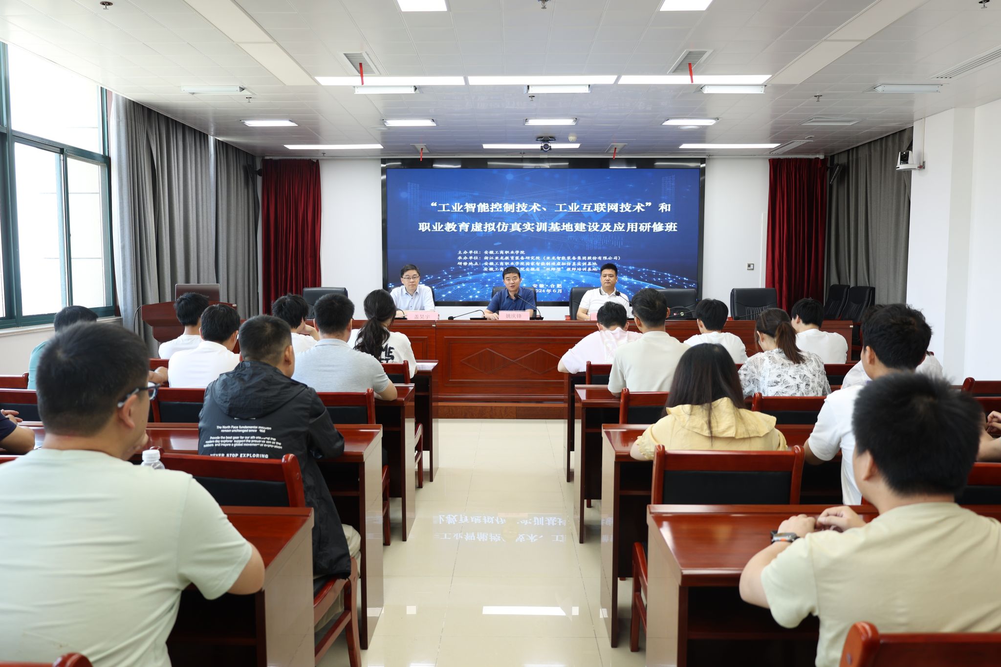 6月17日,依托学院国家智能制造虚拟仿真实训基地和安徽省“双师型”教师培训基地两大平台,由安徽工商职业学院主办,浙江亚龙教育装备研究院承办的“工业智能控制技术、工业互联网技术”和职业教育虚拟仿真实训基地建设及应用研修班在我校开班。智能制造与汽车学院院长姚庆锋、亚龙智能装备集团股份有限公司安徽大区市场总监闫从飞出席了开班式,仪式由盖昊宇主持。