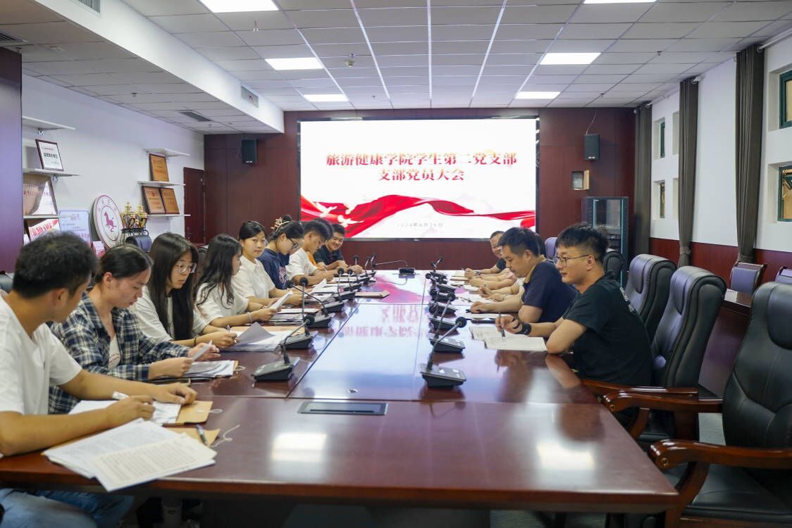 6月26日下午,旅游健康学院学生第二党支部召开支部党员发展大会,研究讨论宋健等10名同学接收为预备党员事宜。旅游健康学院党总支副书记刘燕到会指导,会议由支部书记孙群主持召开。