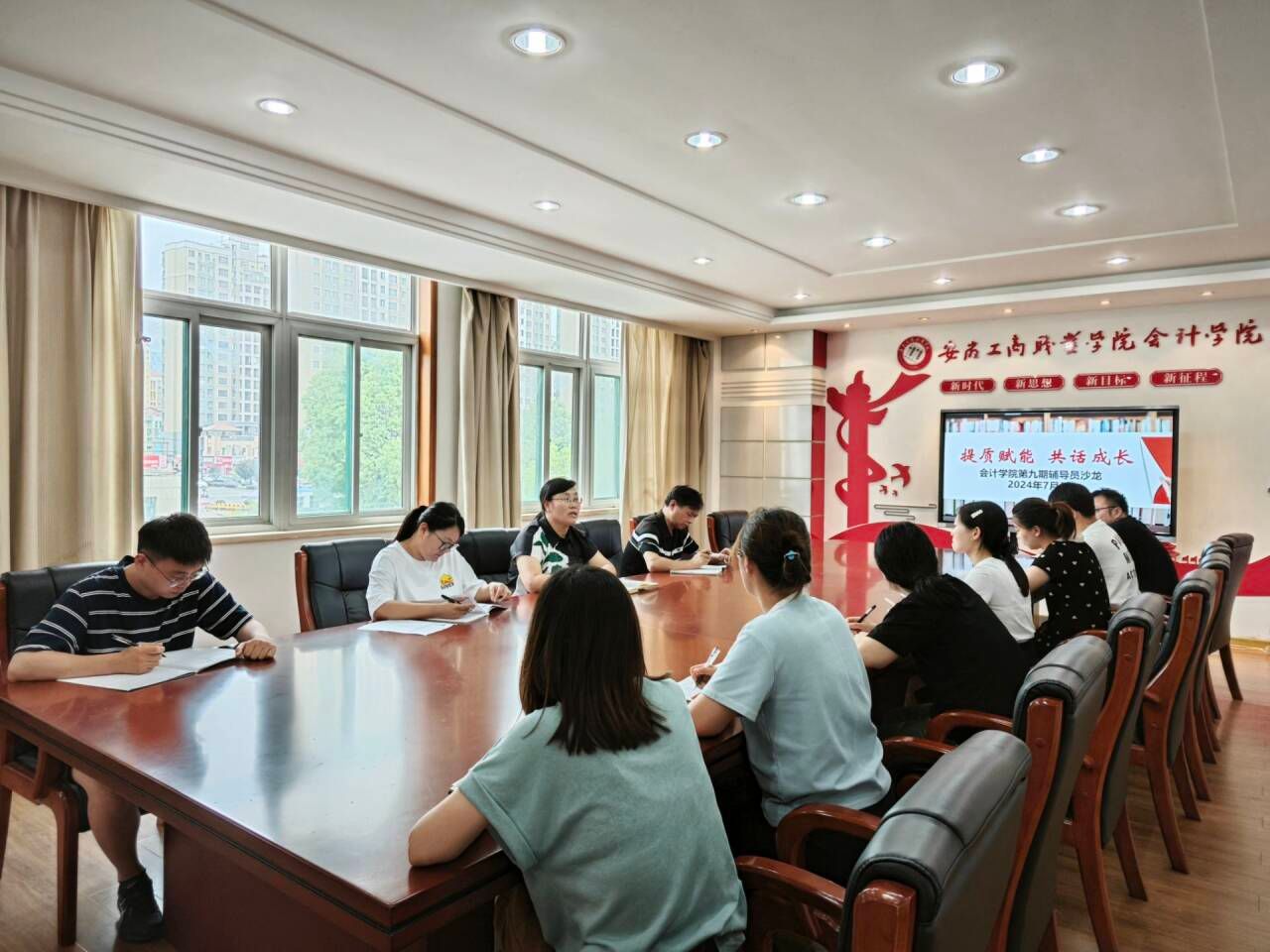 2024年7月3日,会计学院于明德楼二楼党建会议室举办以“提质赋能,共话成长”为题的第9期辅导员沙龙活动。此次沙龙由党总支书记赵艳主持,党总支副书记李峰同志及全体专职辅导员共同参与。