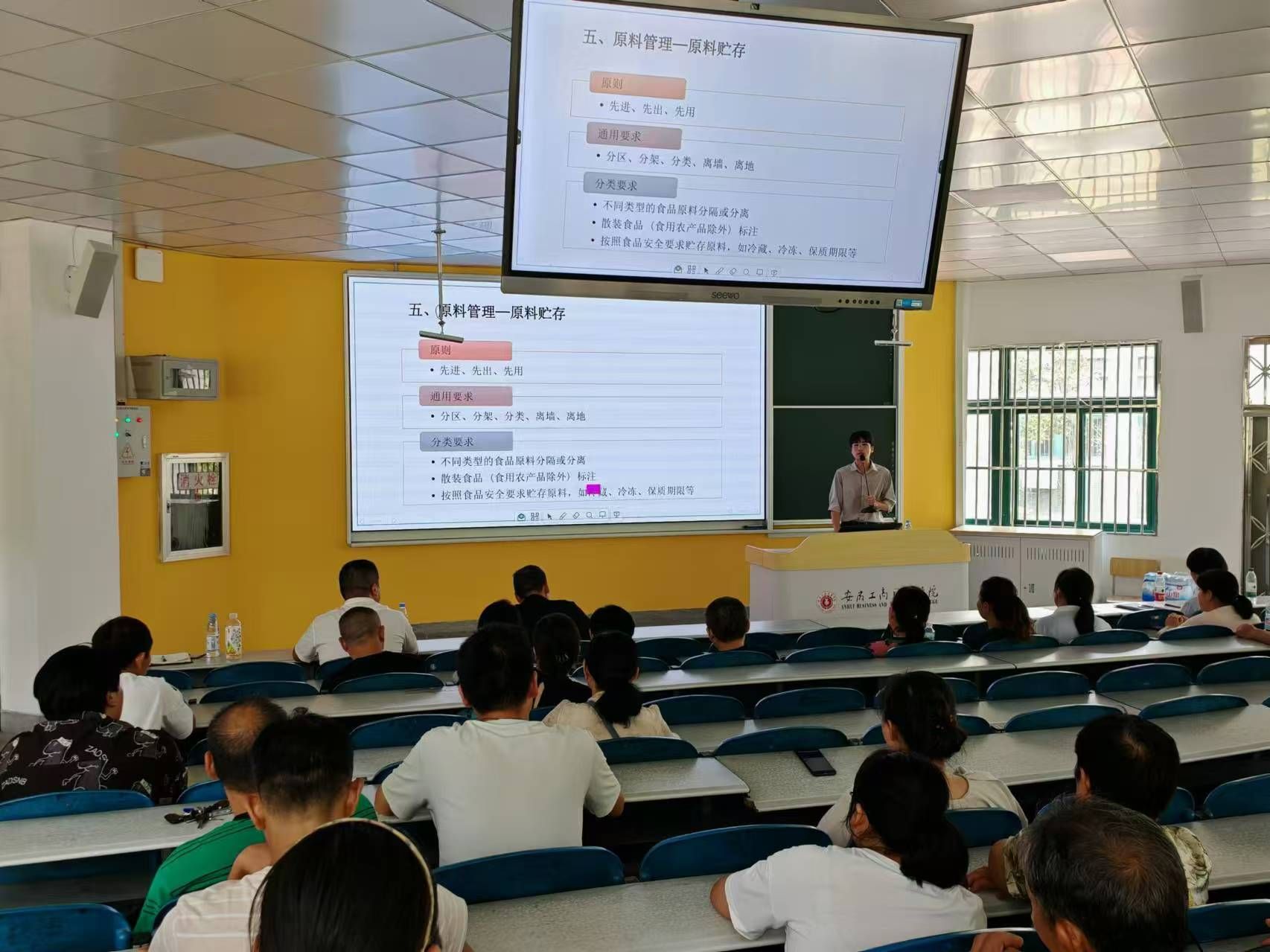 8月26日下午,后勤管理处组织召开2024年秋季学前学校食堂从业人员食品安全培训会,培训会邀请了第三方监管企业温葛伟作专题讲座,学校食堂食品安全总监、食品安全员和食品从业人员共152人参加培训。