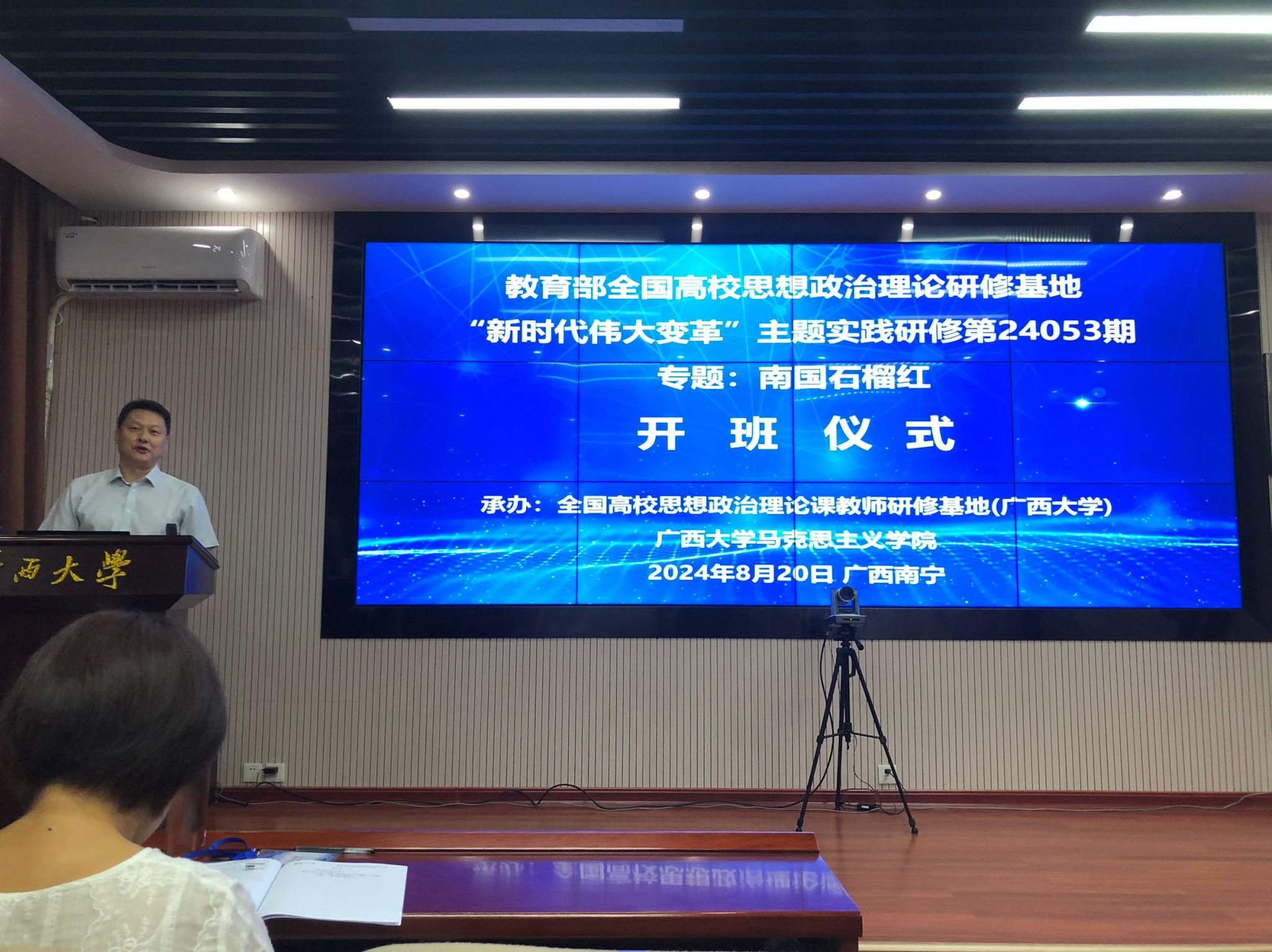 根据安徽省教育厅工作安排,8月19日至25日,马克思主义学院选派韦静、何丽两位教师赴广西大学(全国高校思想政治教育理论课教师研修基地)参加“南国石榴红”专题研修培训。本次研修以推动思政课改革创新为目标,通过专家讲座、现场教学、实践研修和研讨交流等方式,拓展视野、交流经验,提高思政课教学的针对性和实效性。