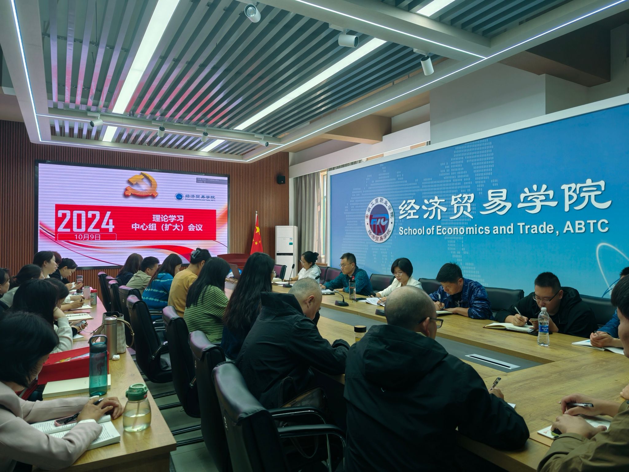 10月9日下午,经济贸易学院党总支在5楼教师能力提升中心召开理论学习中心组学习(扩大)会议,集体学习习近平总书记在全国教育大会上的重要讲话精神和习近平总书记在甘肃、陕西宝鸡考察时的重要讲话精神。会议由党总支书记边昊主持,全体教职工参加会议。