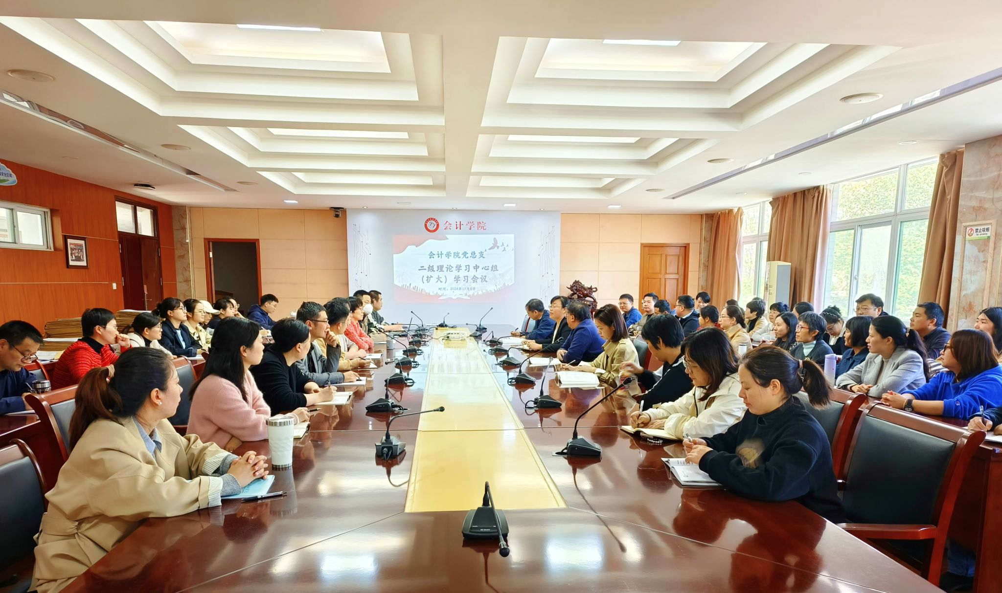 11月6日,会计学院党总支于明德楼二楼二号会议室举行了11月份二级理论学习中心组学习(扩大)会议及教职工政治理论学习会议。此次会议由党总支书记赵艳主持,会计学院全体教职工积极参与,共同提升政治素养和理论水平。