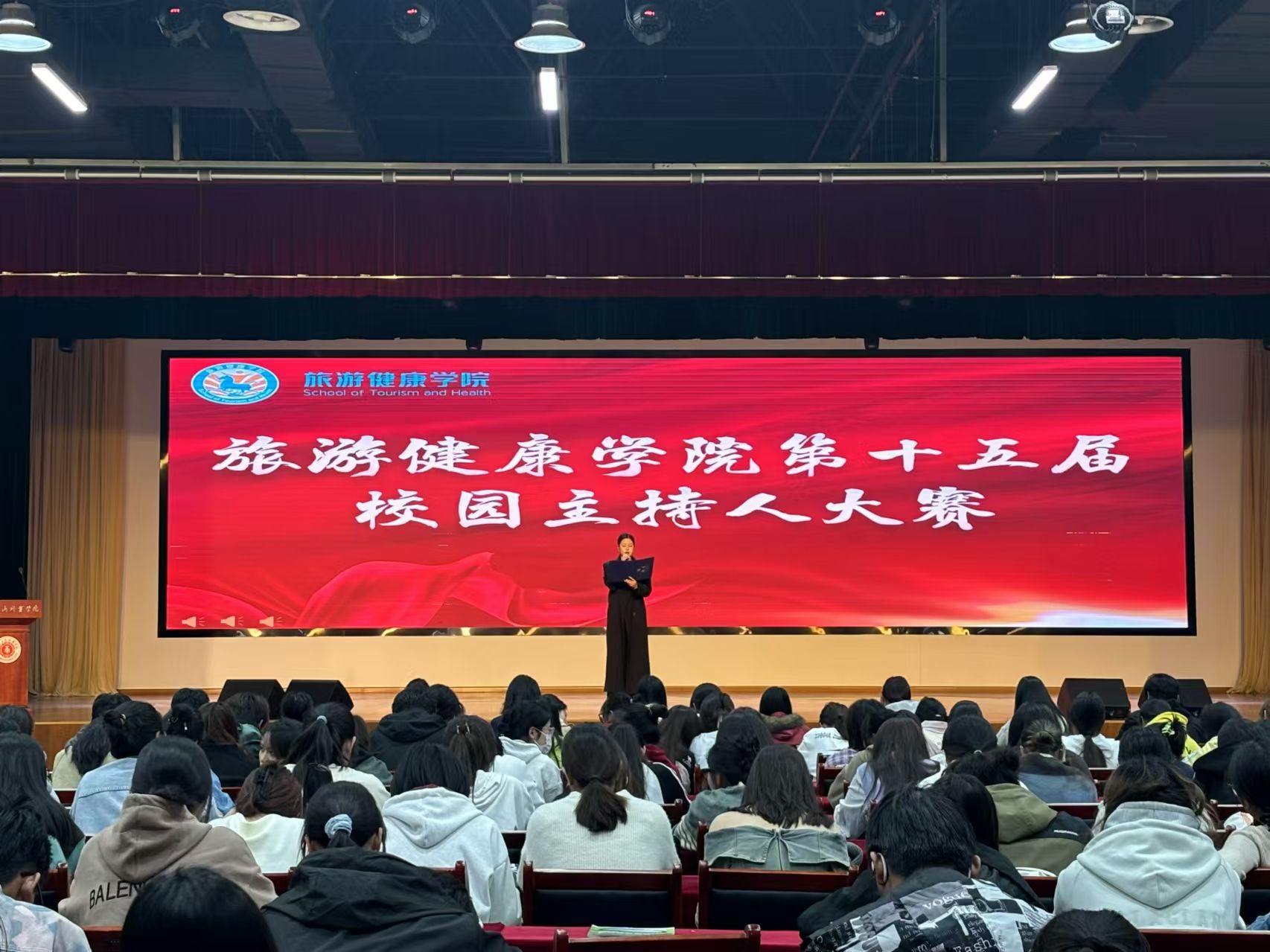 为进一步丰富大学生校园文化生活,展示新时代大学生的青春风貌,营造富有激情活力、充满青春气息的校园文化氛围,拓展大学生综合素质,推动校园文化建设,旅游健康学院于11月8日中午在大学生活动中心举办了第十五届校园主持人大赛。