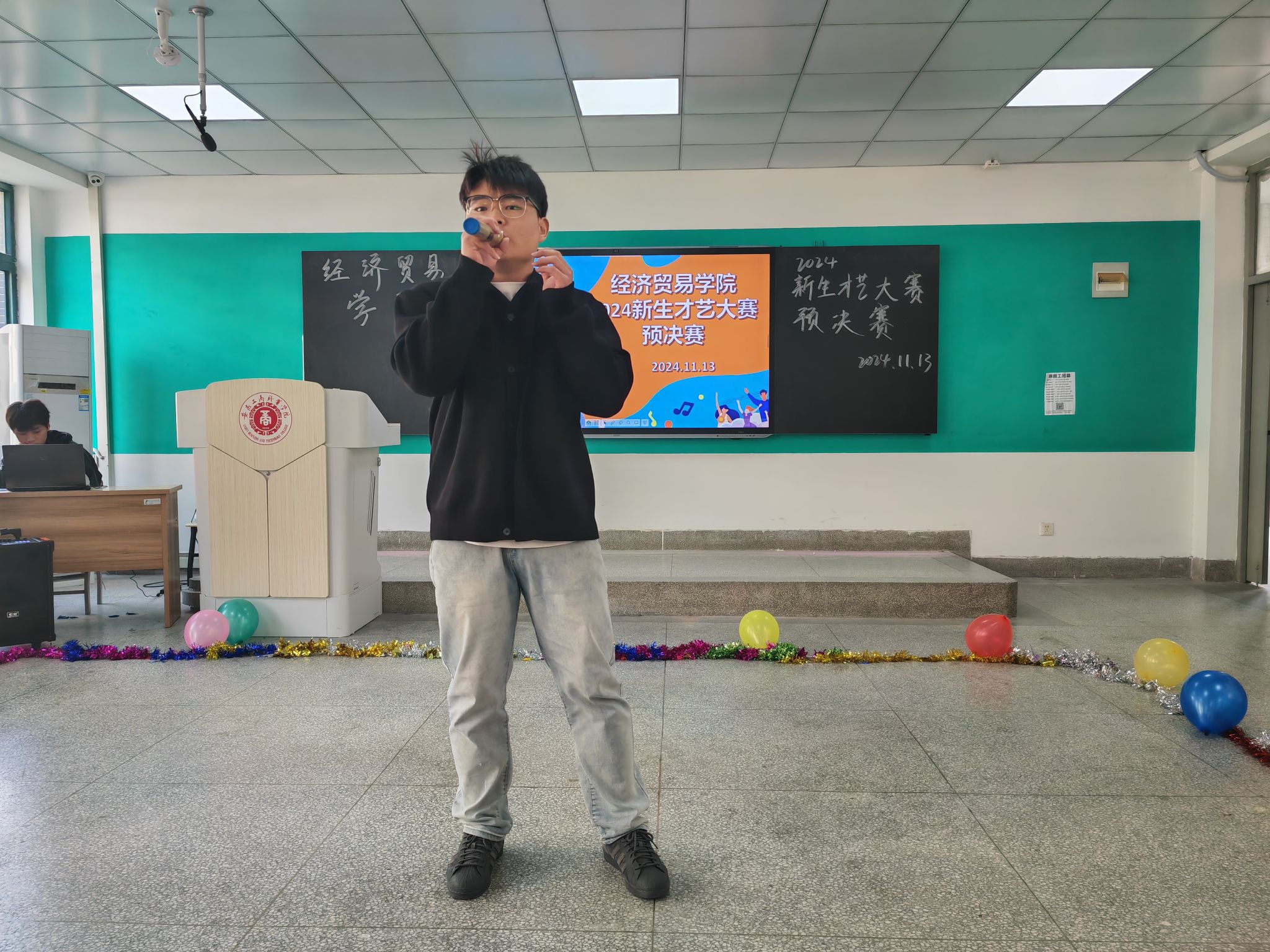 韶华不负启新程,青春作笔书华章;为丰富大学生校园文化生活,给新生提供一个展示自我、施展才华的舞台,促进彼此之间的交流与融合,11月14日经济贸易学院在B205教室举行“怦然‘新’动,‘才’华横溢”——新生才艺大赛,学院团总支书记邬金,辅导员朱清涟、支凤宁、刘雨梅和部分学生干部担任本次比赛评委,学院各专业学生观看了本次新生才艺大赛。