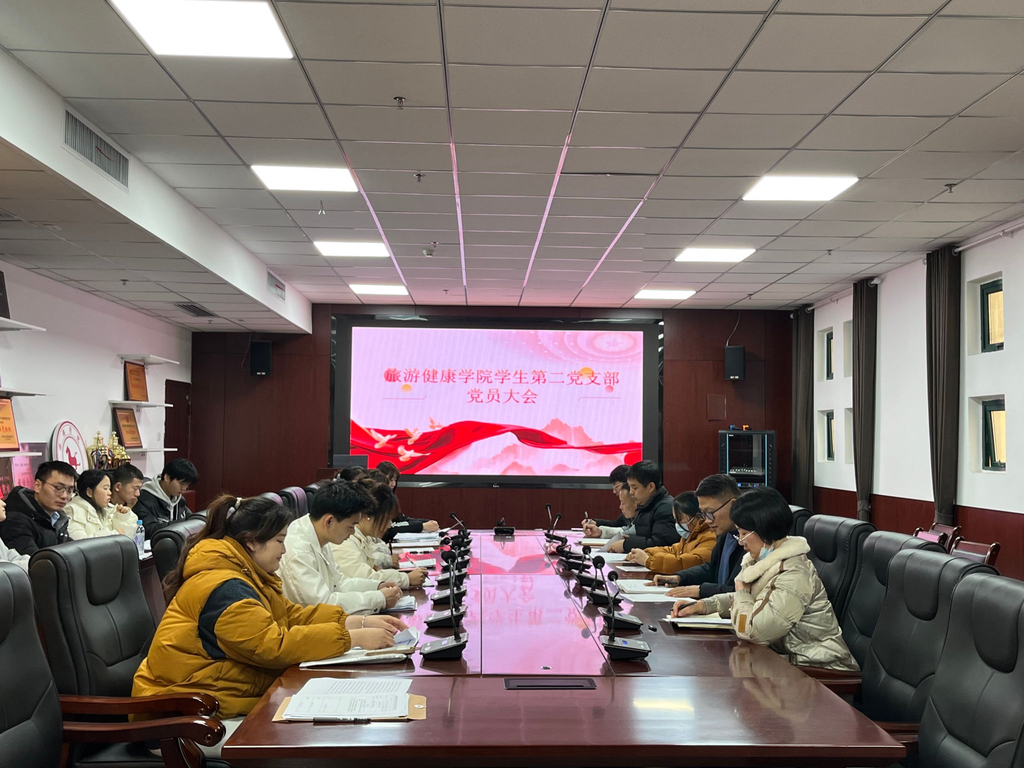12月27日,旅游健康学院学生第二党支部召开党员发展和转正大会,讨论接收预备党员及预备党员转正事宜。旅游健康学院党总支书记杨锐、支部全体党员、发展对象参加会议。会议由支部书记孙群主持。
