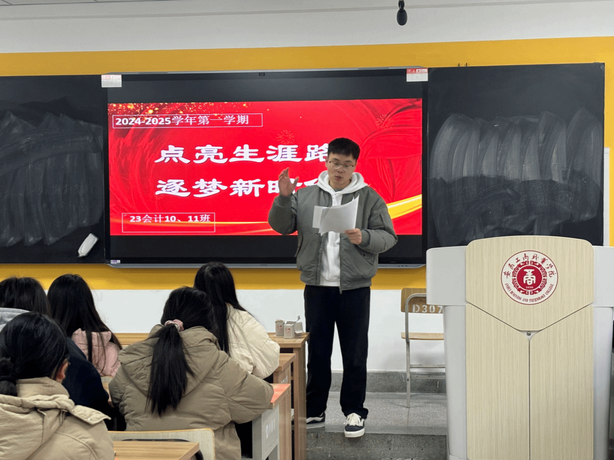 为进一步做好学生工作,提升教育管理质量,会计学院以“职业生涯主题教育月”为契机,持续开展主题班会系列活动,围绕就业创业教育、教育家精神培育、顶岗实习教育、安全教育等方面内容,以“班级搭台,辅导员引导,学生参与”,提前谋划,认真组织,全员参与,各班级开展形式多样的活动,助力学生成长成才。