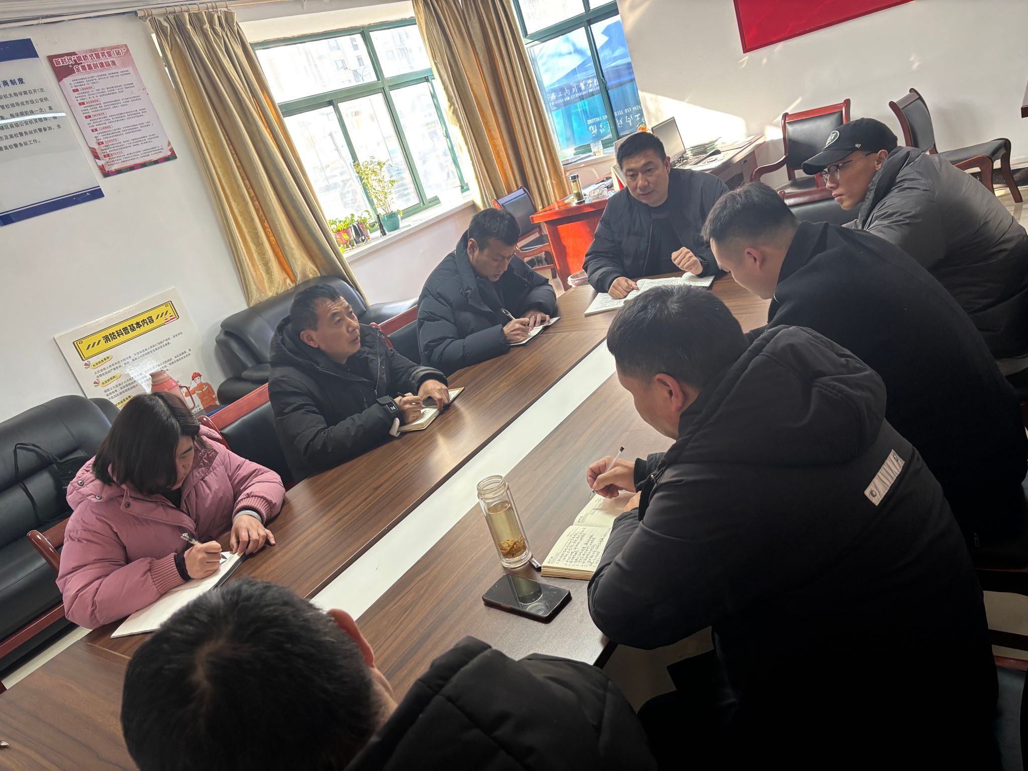 丁闯强调,要紧密围绕学校中心工作和重点工作,以维护校园安全稳定为目标,加强与各部门工作沟通、配合,多措并举,履职尽责,确保开学各项工作的平稳有序。一是要提高政治站位,以高度的责任感履职尽责,时刻绷紧安全之弦;二是要进一步强化门岗管理,严格落实访客预约报备制度;三是要增加校园巡逻频次,发现问题及时处置;四是要建立健全安保考核机制,提升应急处置能力;五是要加强安全隐患排查工作,全面覆盖、不留死角;六是要做好安全教育,营造安全氛围;七是要全心全力做好春学期学生返校工作。