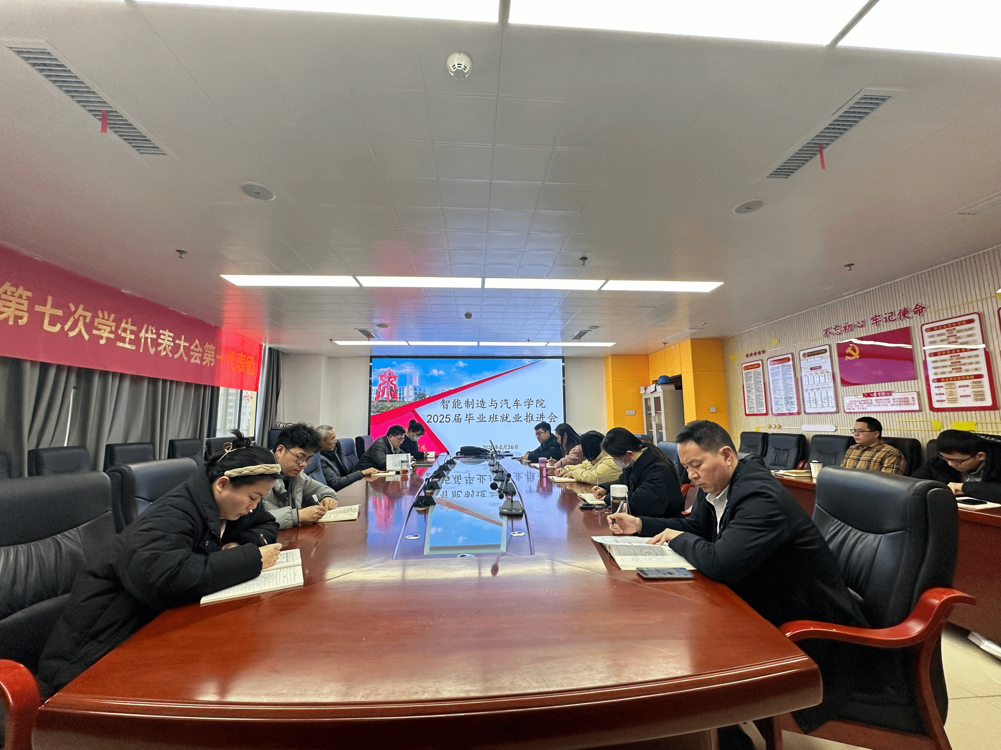2月26日下午,智能制造与汽车学院召开2025届毕业生就业工作推进会,学院党总支书记丁浩、党总支副书记盖昊宇,全体毕业班辅导员参加会议。