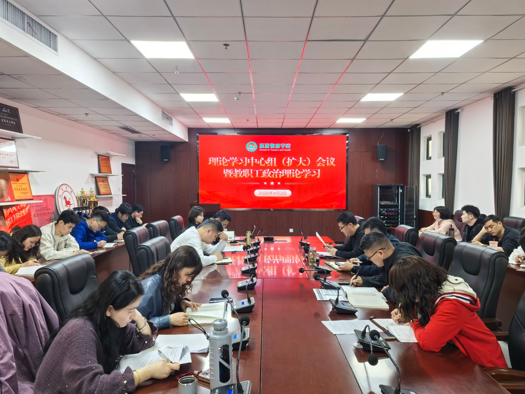 4月2日中午,旅游健康学院党总支在学院会议室召开理论学习中心组(扩大)会议暨教职工政治理论学习,会议由党总支书记杨锐主持,全体教职工参加会议。