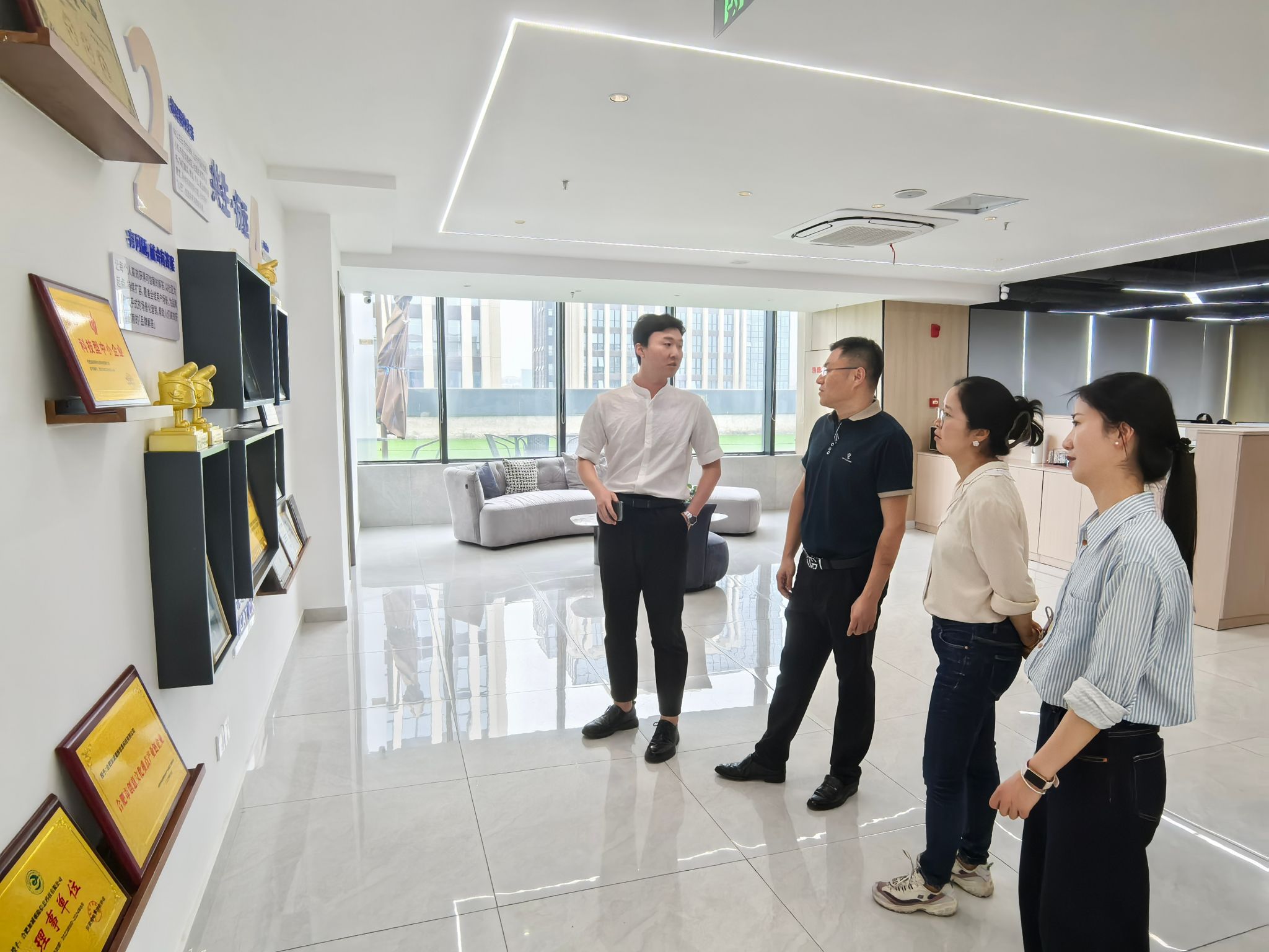 范松首先带领大家参观了公司的办公环境、会议室、休息室等场所。座谈会上,范松详细介绍了企业发展历程、核心业务领域、未来战略规划及人才需求。他提到,作为信息技术服务领域的创新型企业,公司当前亟需具有创新、实干精神的人才,希望与学院深化合作,通过专场宣讲、招聘、实习就业一体化等模式,实现人才链与产业链的高效衔接。