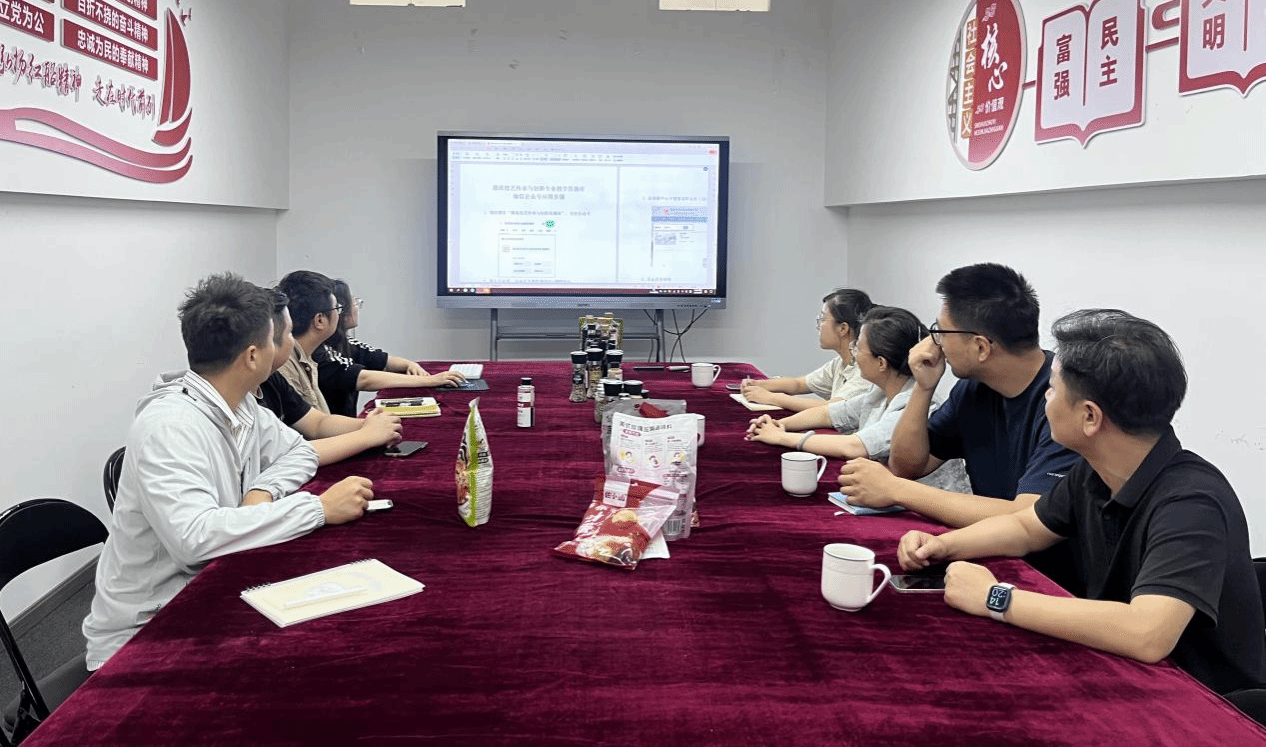 在安徽口味全食品有限公司调研现场,校企双方就资源库应用推广与人才供需对接展开深度交流。调研组着重强调:“资源库建设的核心价值在于推动成果转化应用,需建立校企联动的长效运行机制。”基于艺术设计学院广告艺术设计、产品艺术设计等专业优势,同时提出构建“技艺保护-创意转化-市场推广”的全链条合作模式,指出学院毕业生在非遗IP设计、短视频内容创作、电商直播运营等领域具备精准服务企业需求的胜任力,为在校生提供实践机会的同时储备优质设计人才。