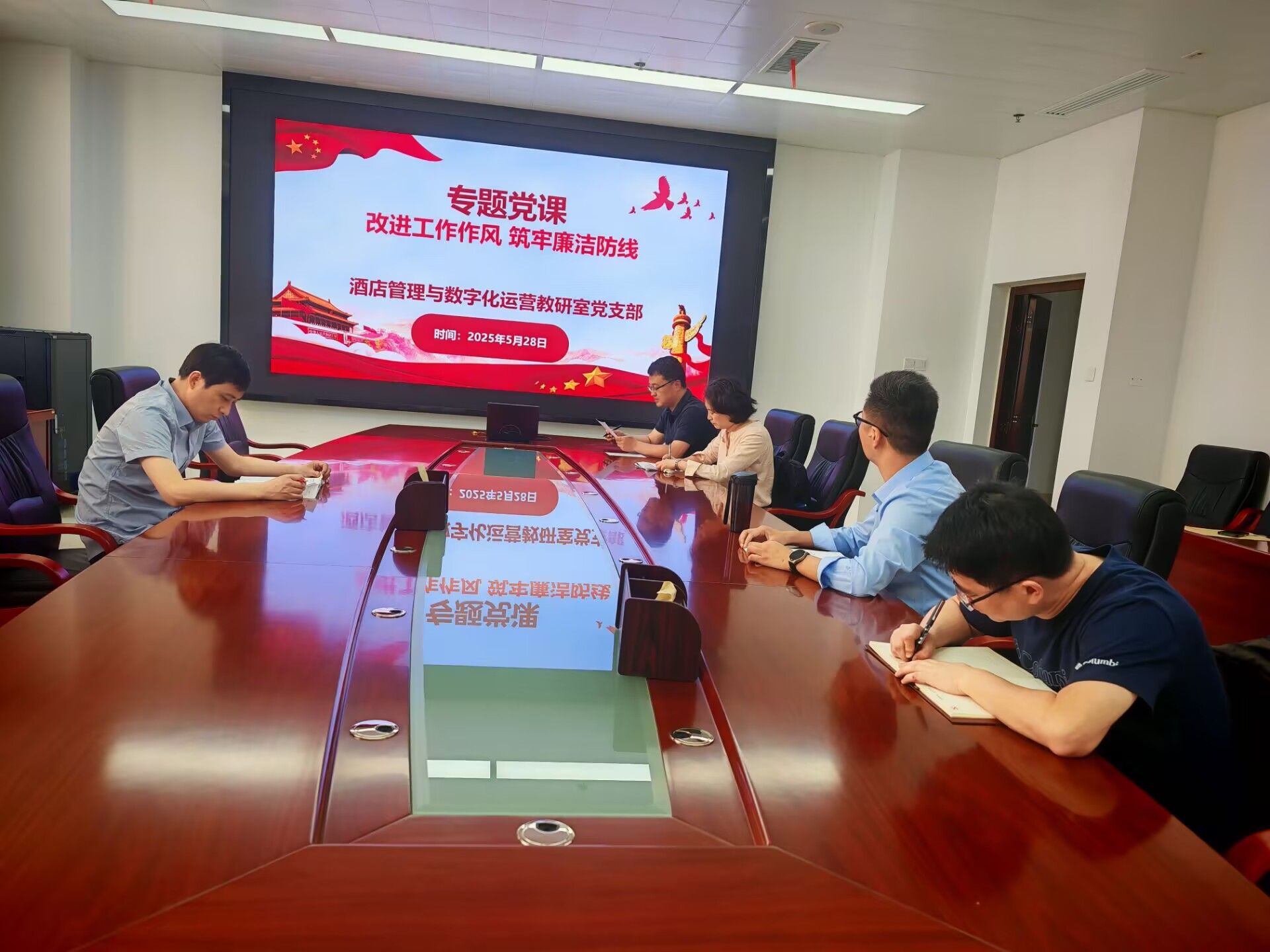 5月28日下午,旅游健康学院酒店管理与数字化运营教研室党支部开展党员活动日学习。学习活动由支部书记王彦龙主持,全体支部党员参与,校党委委员、纪委书记吴松飞以党员身份参加了本次学习。