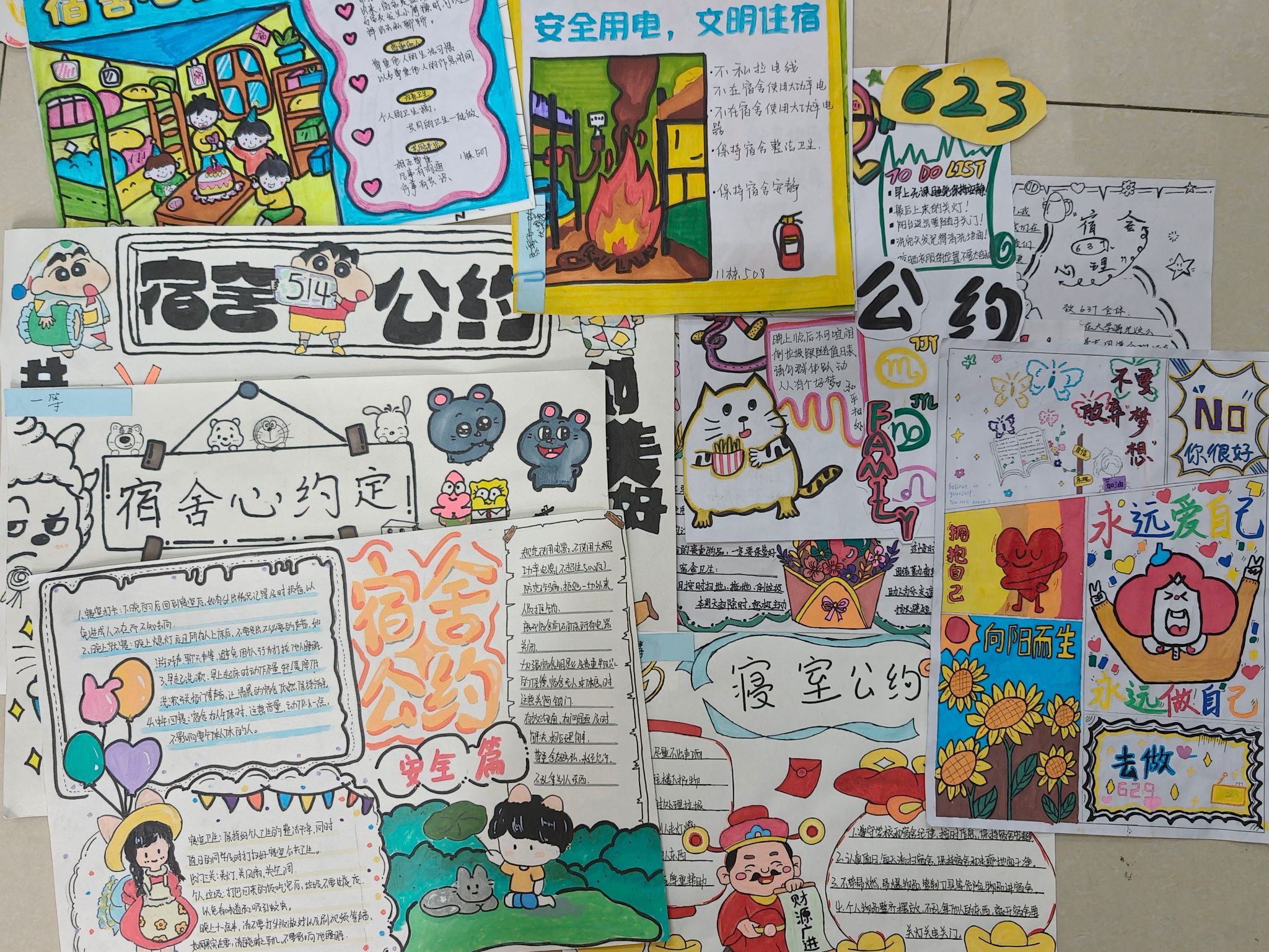宿舍心灵公约设计活动以“宿舍心约定”为主题,鼓励宿舍成员共同制定包含卫生管理、作息规范、情感支持等内容的公约。从前期讨论到方案设计,大家通过分工协作完成公约模板与内容创作,在劳动实践中增强自我管理能力与朋辈互助意识,以劳动实践培育责任担当与团队精神。