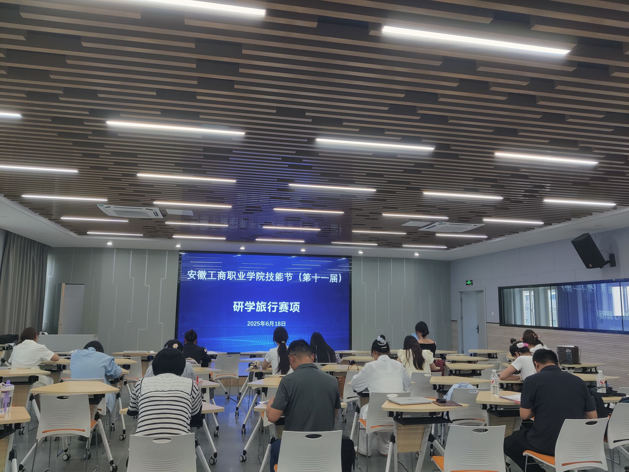 2025年6月18日下午,安徽工商职业学院第十一届技能节“研学旅行”赛项在明德楼四楼VR实训室顺利举行。共有来自不同专业、不同年级12名选手进入决赛,同台竞技,展示技能与风采。吴子钟、牟婉琼、张亚运、杨雪四名教师担任“研学旅行”赛项的指导教师和比赛评委。