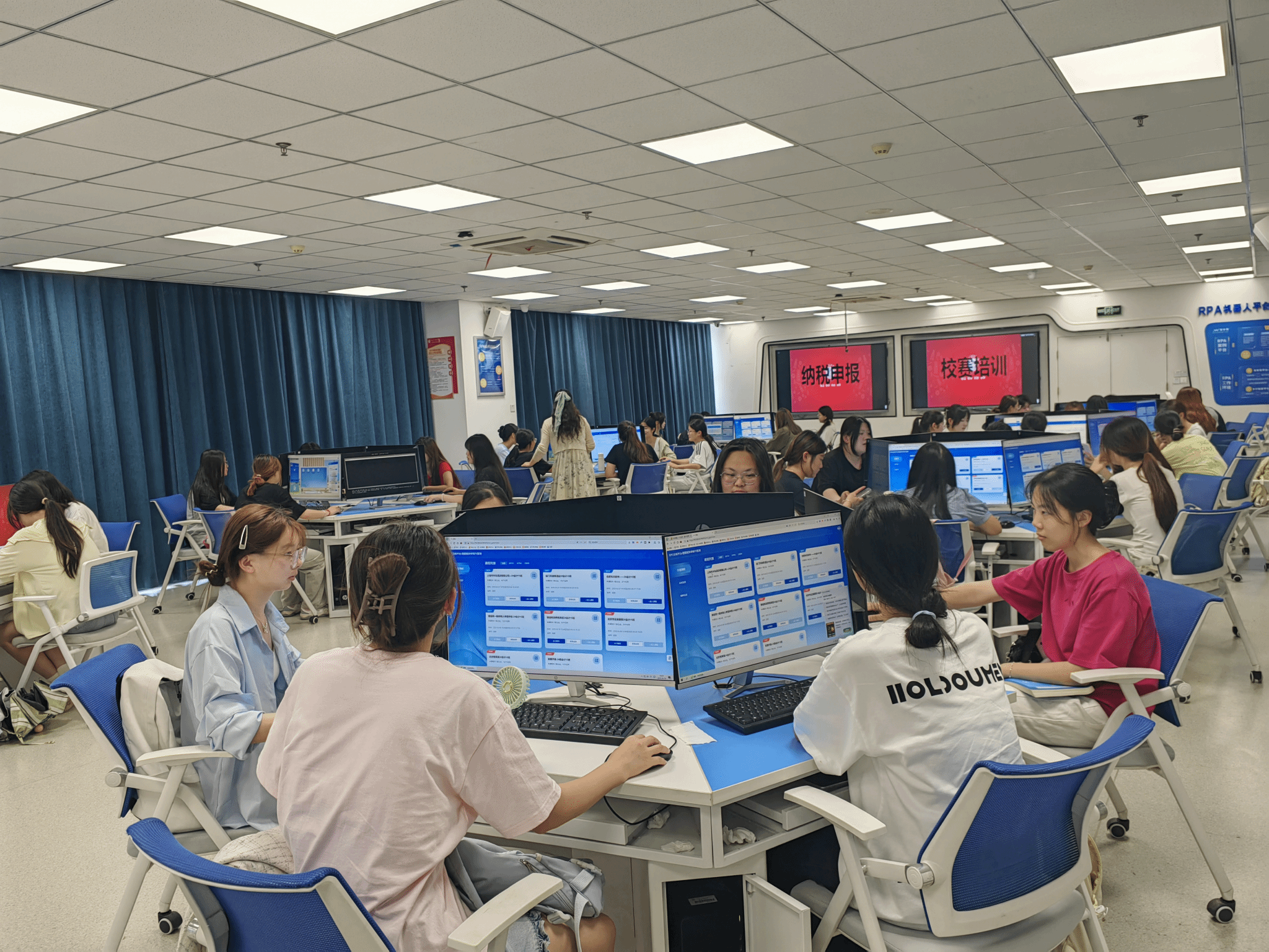 本次比赛旨在培养和提升学生涉税业务处理能力,树立学生依法纳税、控制税收风险的观念,吸引了会计学院众多学子积极参与。为了让参赛学生更好地掌握比赛相关知识和技能,税务与审计教研室相关老师组织了赛前培训指导,帮助学生熟练掌握必备纳税申报技能点。竞赛考察财税理论知识和企业纳税申报,通过学习通平台和网中网金税平台进行理论和实践测试,选手们需在限定时间内完成复杂的纳税申报流程,并准确识别潜在的税务风险,检验学生财税综合素养和实践应用能力。