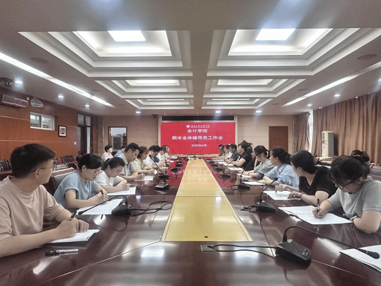 6月20日中午,会计学院在明德楼二楼2号会议室召开期末全体辅导员工作会议。会计学院党总支书记赵艳和全体专兼职辅导员参加会议,党总支副书记李峰主持。