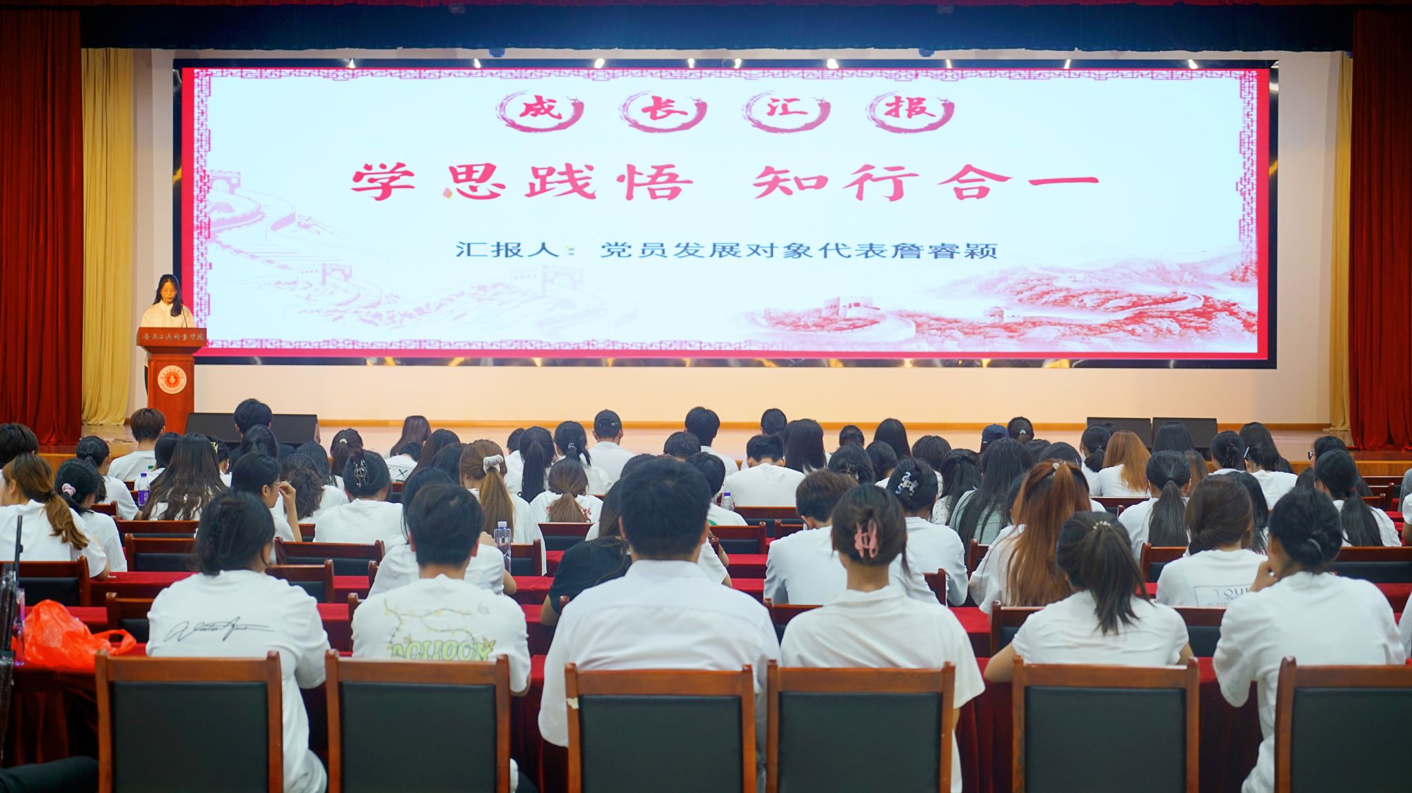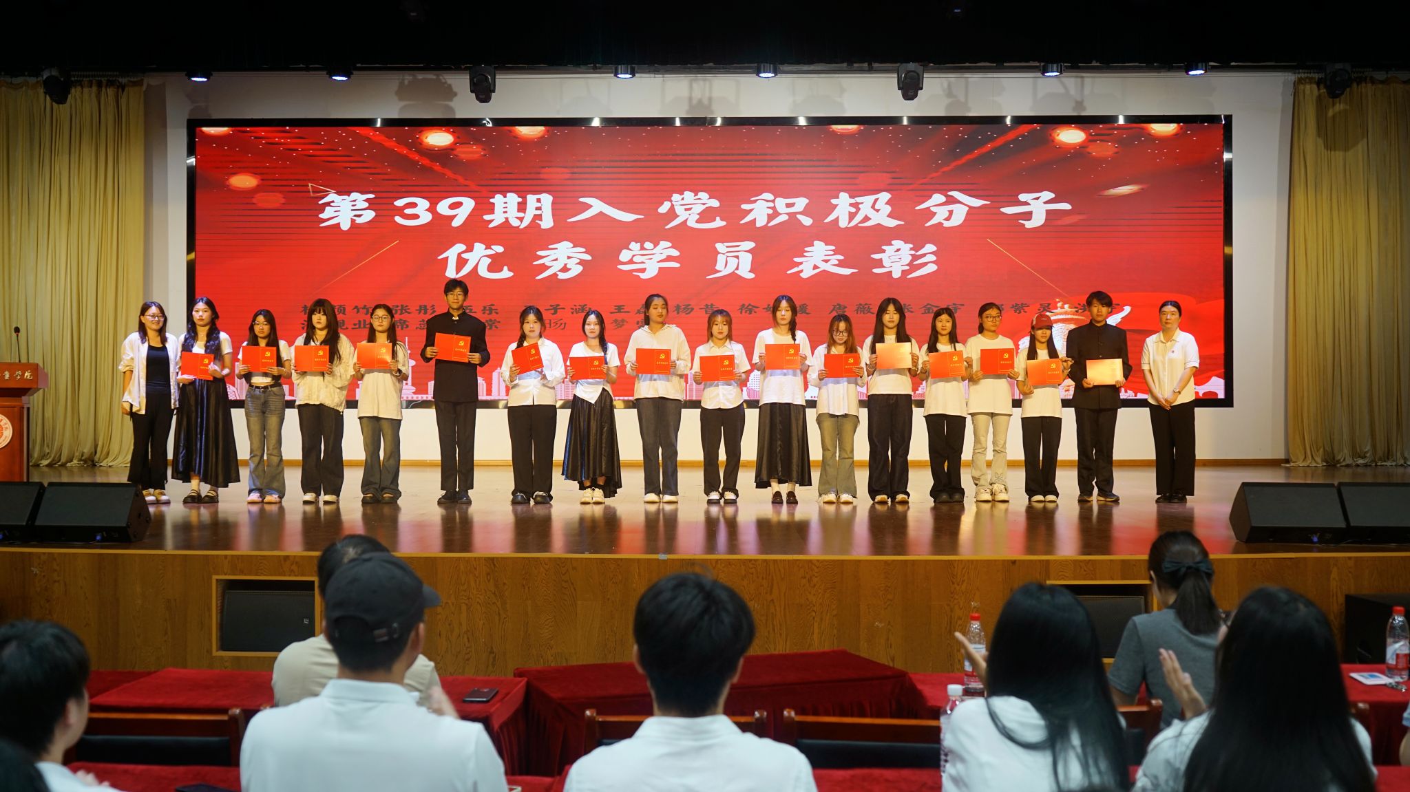 在 “成长・薪火相传” 环节,入党积极分子代表王磊、党员发展对象代表詹睿颖、学生党员代表周润依次登台分享。他们结合自身经历,从理论学习的沉淀、社会实践的磨砺,到服务师生的点滴,娓娓道来入党道路上的成长故事与深刻感悟,生动展现新时代青年党员的奋斗风采。真挚动人的发言,引发全场强烈共鸣。分享结束后,学院对“入党积极分子优秀学员”及“党员发展对象优秀学员”进行表彰,颁发荣誉证书,树立起身边的学习榜样,激励更多同学奋勇争先。