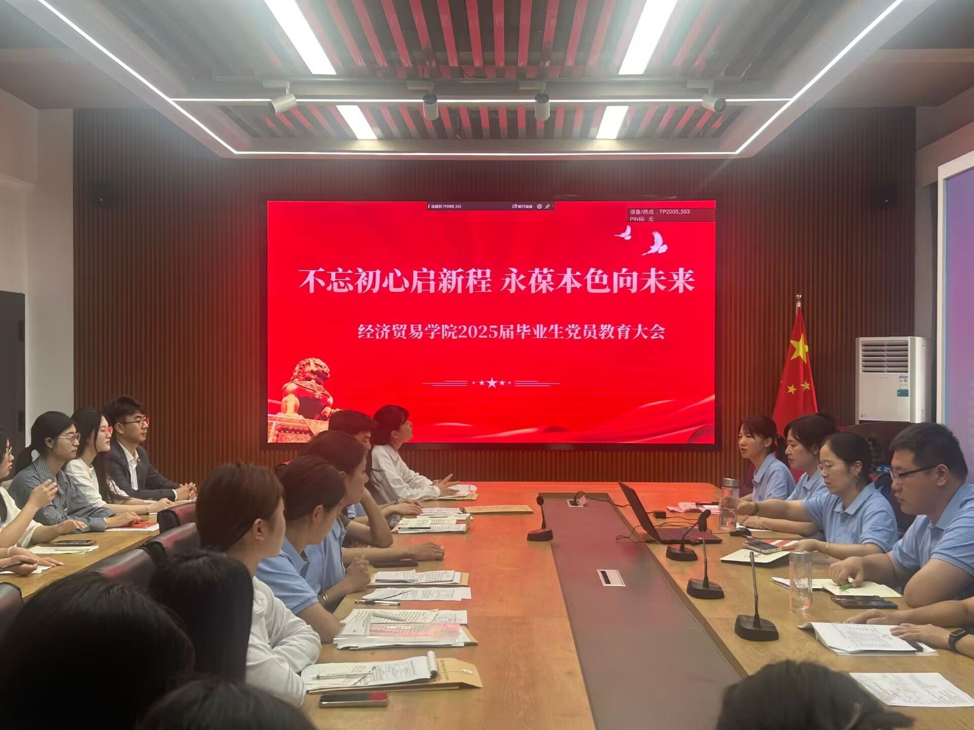 在喜迎中国共产党成立104周年之际,为深情献礼党的生日,进一步强化毕业生党员身份意识和责任担当,引导他们在学思践悟中筑牢信仰之基、在实干笃行中淬炼坚强党性。6月29日,经济贸易学院学生党支部开展“不忘初心启新程 永葆本色向未来”毕业生党员教育活动。学院党总支副书记马莉,全体毕业生党员参加活动。活动由学院党总支委员、组织员杨玉娇主持。