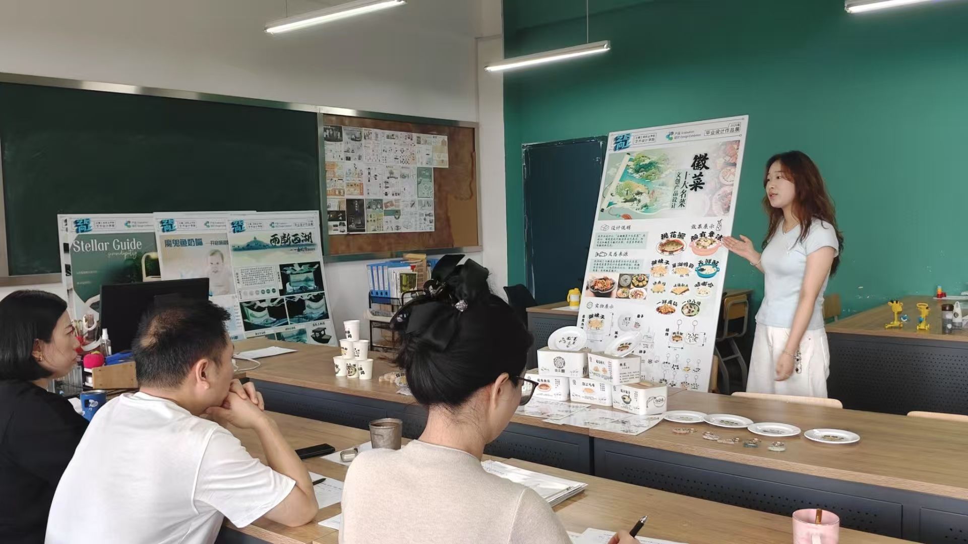 本届毕业设计以 “专业深耕·社会关怀” 为核心主题,鼓励学生从传统文化、地域特色、科技前沿中汲取灵感,涵盖平面视觉、空间设计、文创产品等多个维度。答辩过程中,毕业生们以展板、实物模型的汇报的形式,清晰阐述了设计思路、研究方法、创新点及实践应用价值。答辩评审们仔细地聆听了同学们的汇报,针对毕业设计作品中存在的问题进行针对性提问,并结合行业实践经验给予具体改进指导。