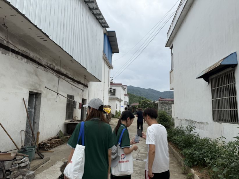 出征仪式结束后,师生们怀着满腔热情,在历经四个小时的车程后,顺利抵达安庆市太湖县大龙村。稍作休整,志愿者们便开始筹备第二天的具体工作——小组分工、问卷整理、任务协调等等。夕阳下,志愿者们忙碌的身影与大龙村的田园风光相映成趣。“能为这里的乡亲们做点实事,再累也值得!”学生志愿者王犇擦着汗说道。