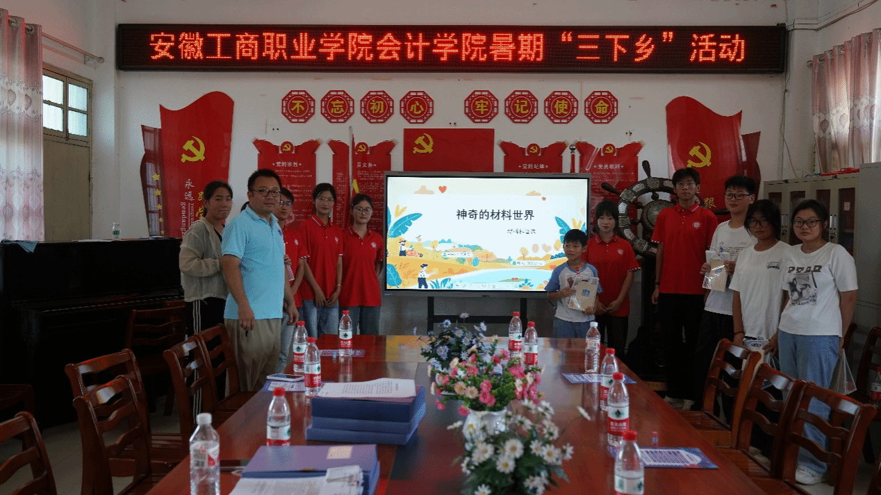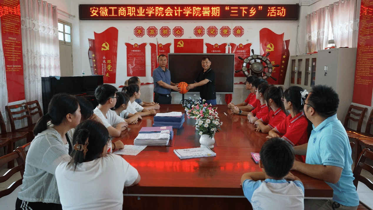 8月19-20日,在寿县船涨学校,实践队员和船涨学校师生进行座谈,围绕基础教育发展、学情变化、校园安全以及大中小学思政课一体化建设进行了充分的交流和探讨。会计学院党总支副书记李峰还代表学院向寿县船涨学校捐赠了文体用品。随后,学院实践团开展趣味“推普”课,用儿歌、绘本、语言游戏等形式激发孩子们的表达热情。课堂上,实践团成员带着孩子们一边唱儿歌,一边纠正发音,欢声笑语回荡在教室。“看到他们的变化,特别有成就感。”实践团成员纷纷表示。此外,实践团成员还鼓励孩子们做家庭“推普小老师”,营造良好的“推普”氛围。